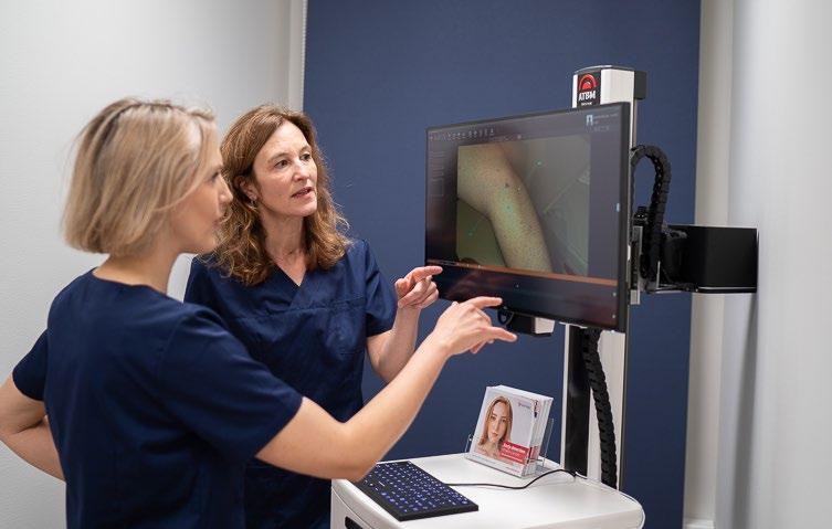 Hudlegene på Bryggen Hudlegesenter har travle dager. «Vi har mange pasienter som tar direkte kontakt, men mange blir også anbe falt å ta kontakt med oss gjennom fastlegen sin» kan Lilleskog fortelle. De bruker Infodoc journalsystem, og det er enkelt å kommuni sere med hudlegene både via epikriser og annen kommunikasjon.