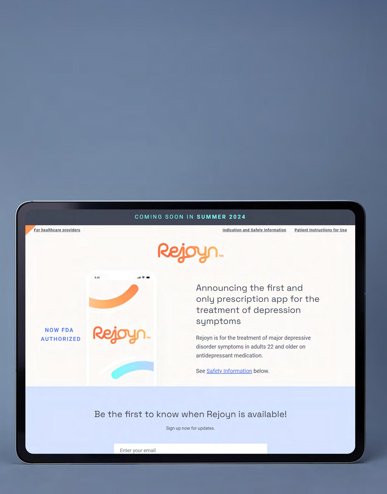 Coyne PR partnered with Otsuka to launch Rejoyn, the first-ever prescription digital therapeutic for the treatment of major depressive disorder. The clearance generated 285 national placements (e.g., CNN, NPR, STAT, Miami Herald, Univision, Telemundo), resulting in more than 1 billion impressions and thousands of visits to the brand website.