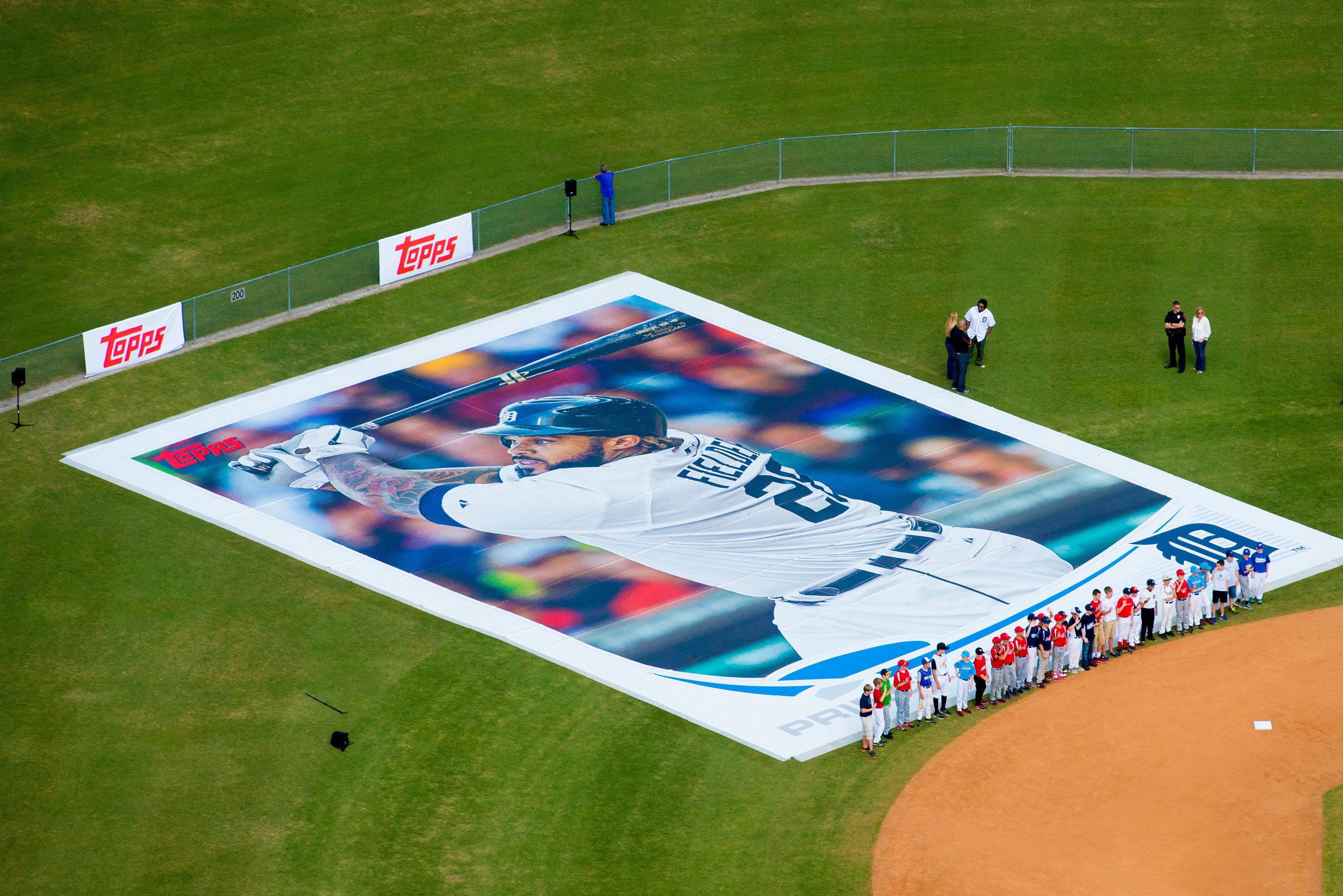Topps teamed up with Coyne to make a “big” launch of the new Topps Baseball Series 1 cards. The team developed a plan to create the World’s Largest Baseball Card featuring one of the biggest sluggers in the majors and the face of the Topps Baseball Series 1 cards – Detroit Tigers First Baseman, Prince Fielder. This massive 5,000+ square foot baseball card (or 82,944 cards if you are counting), was built on the Lakeland City Little League complex, located just a few minutes from Detroit Tigers’ spring training facility. Prince Fielder along with 75 excited little leaguers, took position atop the card and unveiled this massive card by rolling out a 400-pound tarp, while a helicopter captured the moment from above.