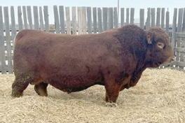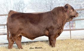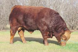 Watch for this eye catching, performance guy who has lots of muscle, extra length and a cherry red hair coat. A strong powerful top line and hid quarter. Just a complete design from top to bottom. He is going to produce those good solid steers and replacements in the fall that cattlemen want. This guy is going to work well on any cow herd.