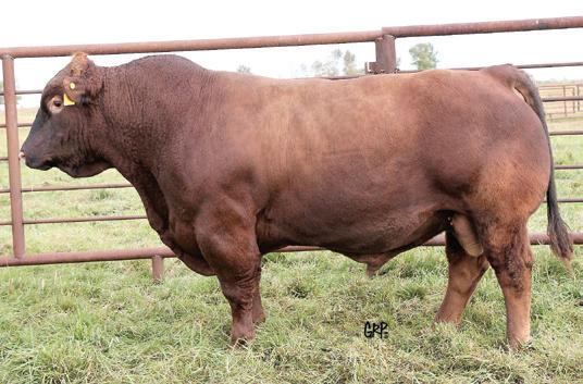 A lot of good genetics behind this guy, Fireball sired herd sire prospect as well as a Crown Royal dam. He has loads of dark cherry red hair which covers a thick hipped, deep ribbed body structure. He for sure will work well on a cow herd with all his performance. GRAND SIRE C57