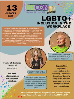 Connie will lead “LGBTQ+ Inclusion in the Workplace”, highlighting resilience, acceptance, and the importance of creating affirming spaces. She’ll be joined by special guest performer Gia Crystal, CRPA.
