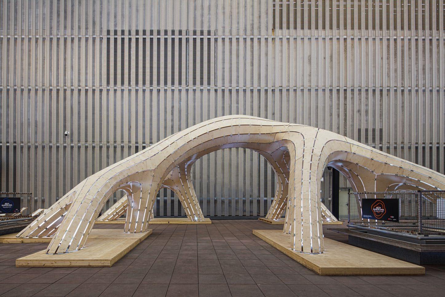 Dendrograma Montjuic. Instalación temporal en el MWC23. IAAC (Daniel Ibáñez + Vicente Guallart) y CODA