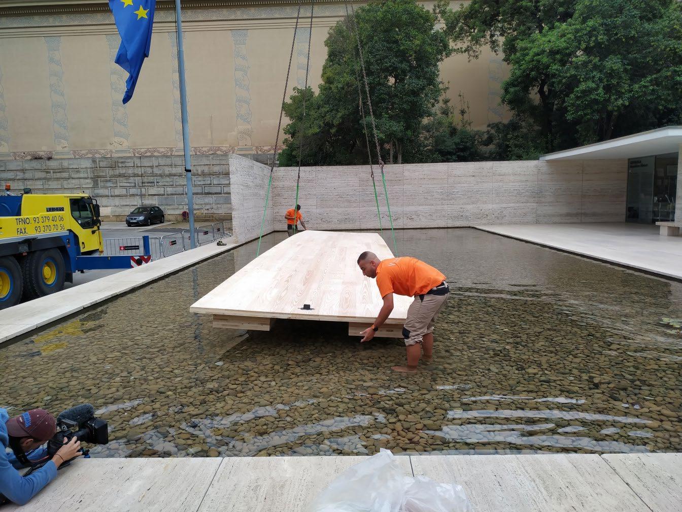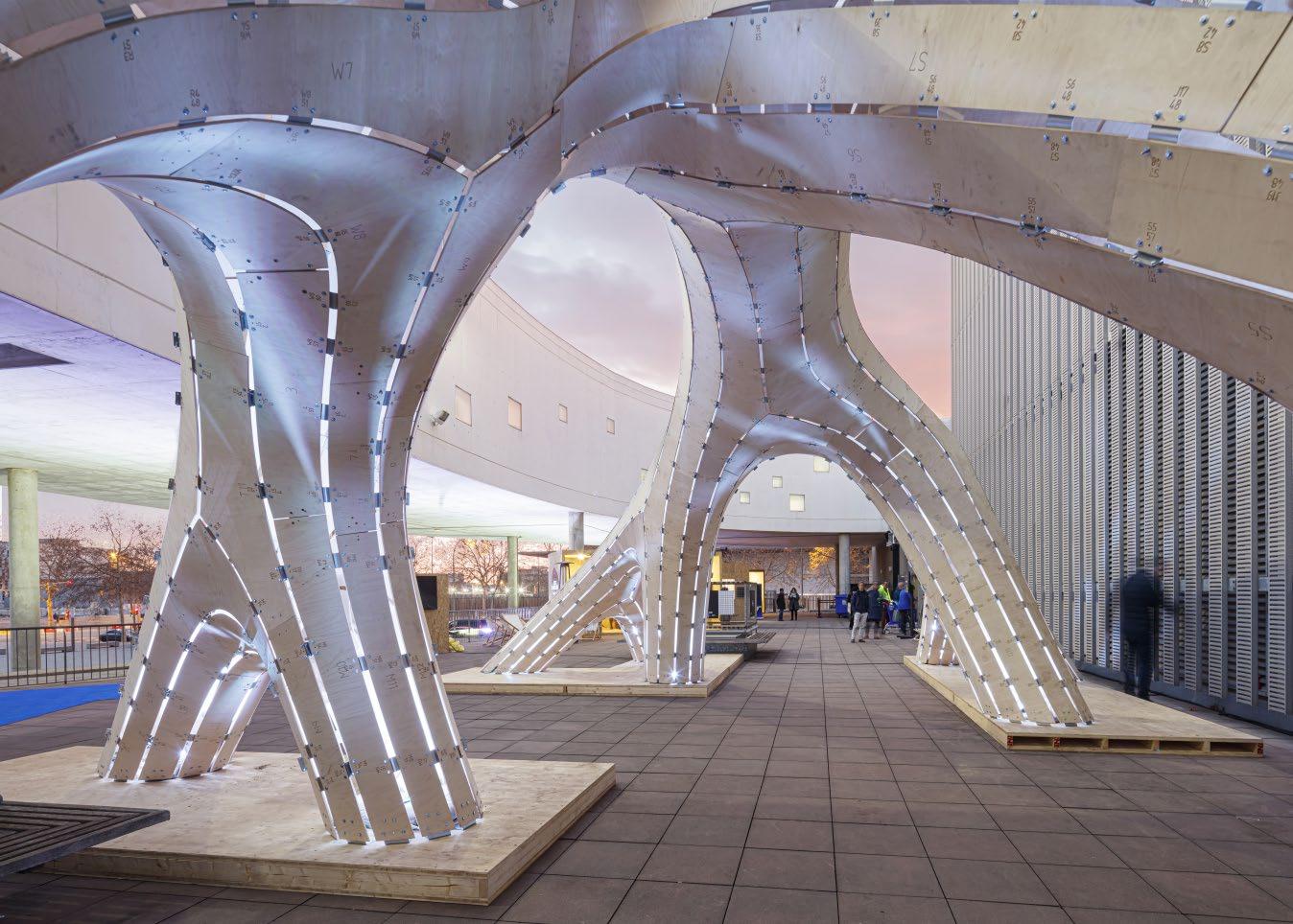 Mass Is More. Instalación temporal en el Pabellón de Barcelona. IAAC (Vicente Guallart + Daniel Ibáñez + Alan Organschi)