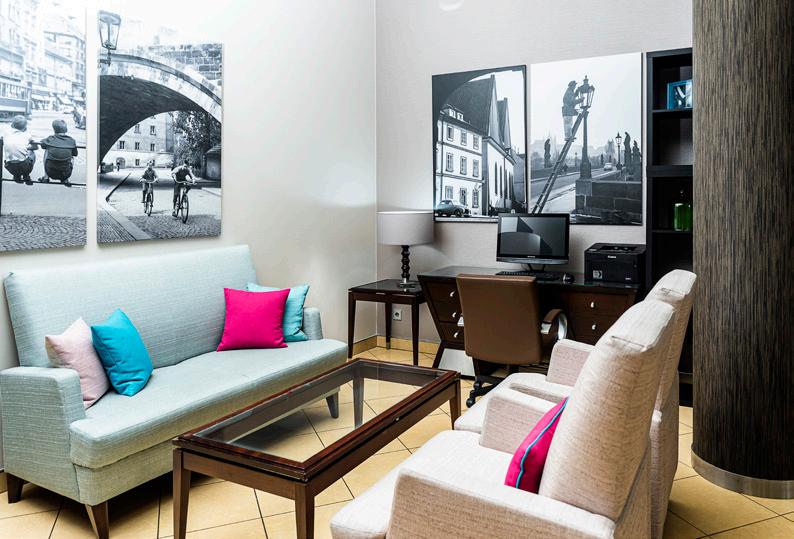 Užijte si kouzelnou atmosféru historického centra v Clarion Hotel Prague Old Town. Kromě standardních a superior pokojů vás můžeme ubytovat v apartmánech s rozlehlou střešní terasou, ze které je dechberoucí výhled na stověžatou Prahu. Rádi si vezmeme na starost také organizaci vaší konference. Hradební 9, Praha 1-Staré Město