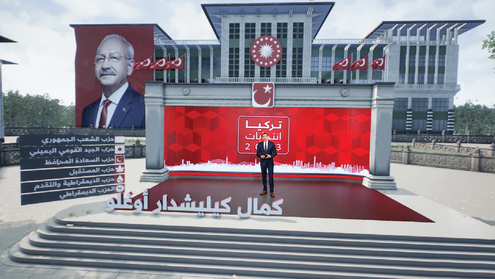 One of the standout features of Alaraby TV’s election coverage was the seamless integration of AR and VR technologies. These powerful tools transported viewers directly into the heart of the Turkish election, allowing them to experience campaign rallies, speeches and debates as if they were physically present. “Our approach not only brought the election to life but also deepened the audience’s understanding of the political landscape and the critical issues at stake,” says Hosni, the creative brain behind the project.