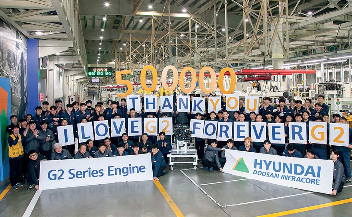 Hyundai Doosan Infracore has celebrated the production of its 500,000th environmentally friendly small-sized G2 engine with a ceremonial event at its Incheon G2 factory, in South Korea.