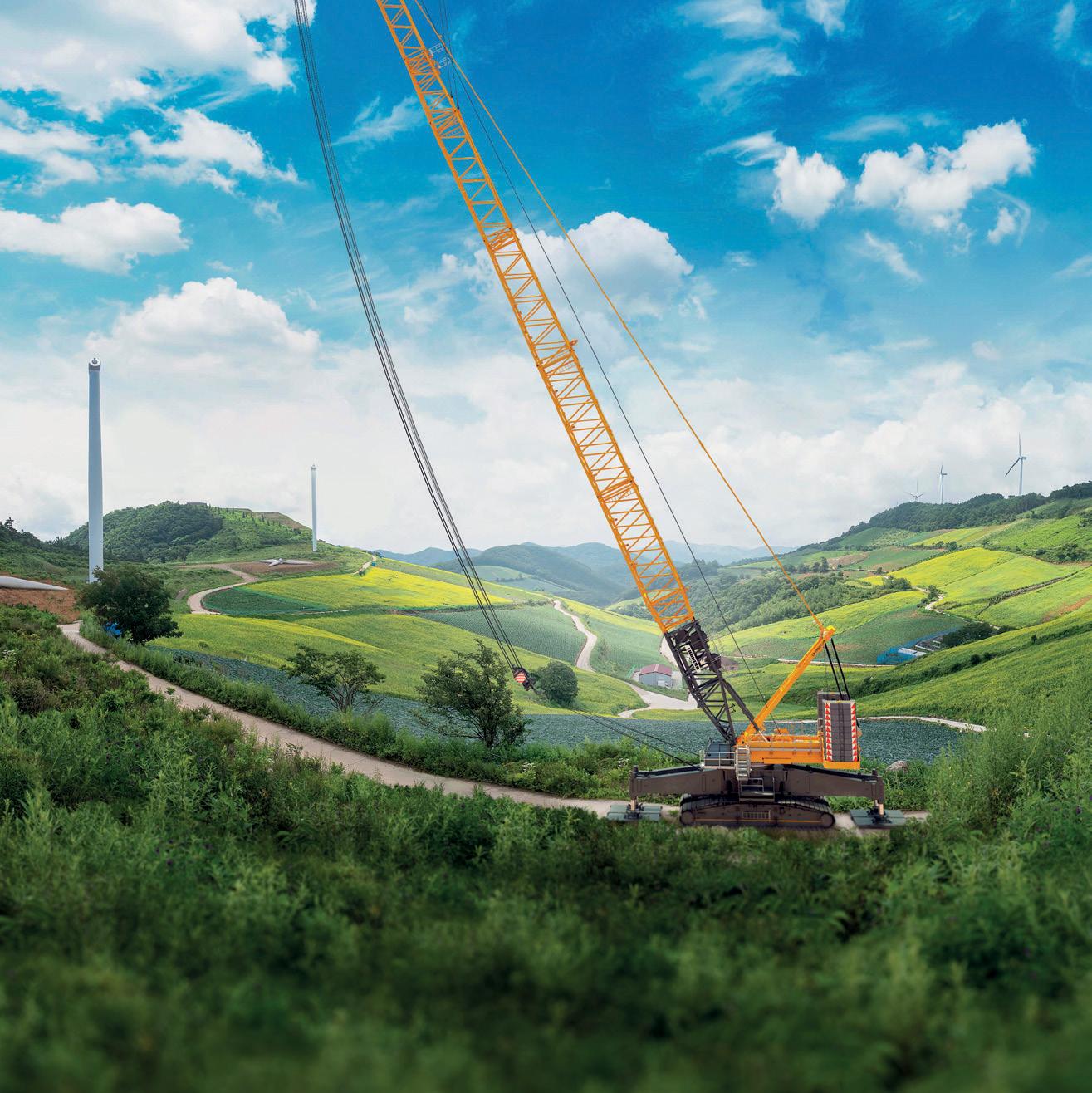 lower area of the main boom, which increase the lateral stability of the entire system. Comparing the longest wind-turbine boom with the derrick system on the predecessor model (156-metre main boom plus 12m lattice type fixed jib) with the new crane with the same boom length results in a 64% increase in lifting capacity (from 73 to 120t). In addition, the new LR 1700-1.0W can be built up higher: with derrick system plus 15m, without derrick system plus 6m. The new crane thus meets the more challenging requirements of working on modern wind turbines with hub heights reaching 170 metres. Liebherr also offers the LR 1700-1.0W with a luffing jib. This option was not available for its predecessor.