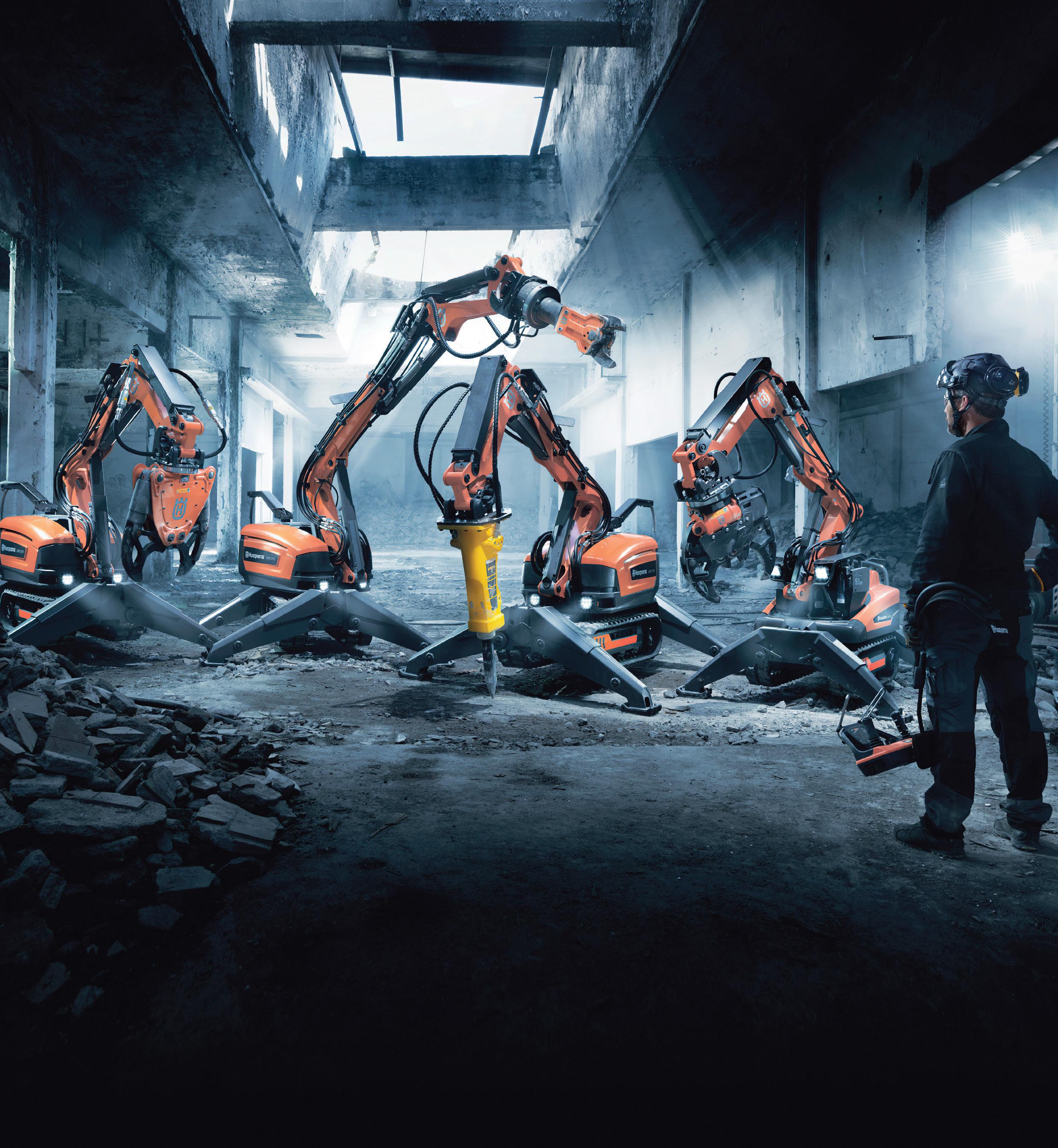 Our remote-controlled demolition robots are the very latest in demolition machines, featuring high power, low weight, and functional design. They are the obvious choice for users who want maneuverable yet highly powerful, stable machines with a long reach. Our DXR machines have a modern and easy-to-use remote control, with unrivalled user-friendliness and design. All this, combined with our experience, know-how, and global presence, means you are also assured of highly accessible and competent service and support.