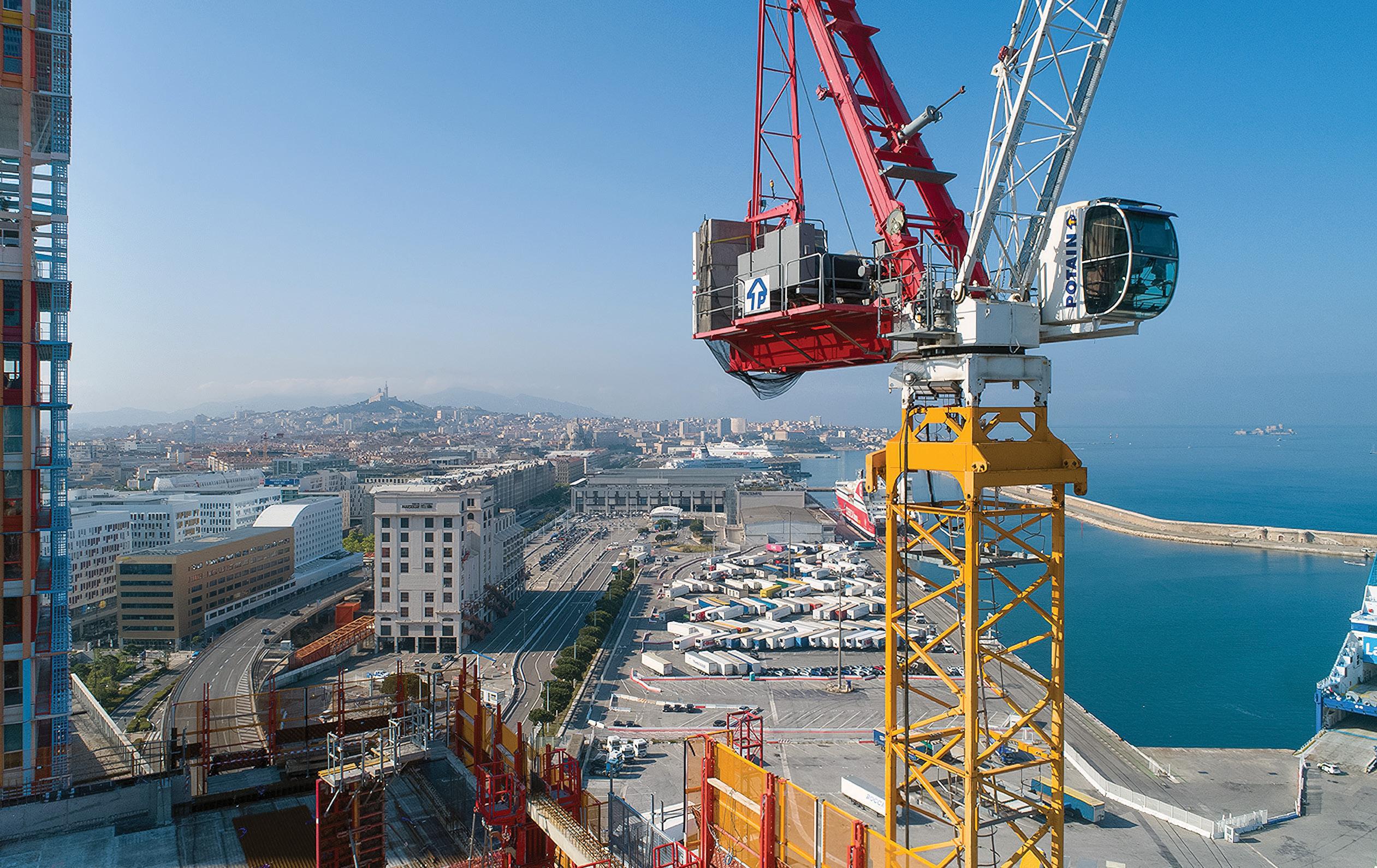 Two Potain MR 295 luffing jib cranes are leading the con struction of a major new building in Marseille, France, designed to transform the city’s skyline and help regen erate the waterfront area with 21,800 m² of modern office space.