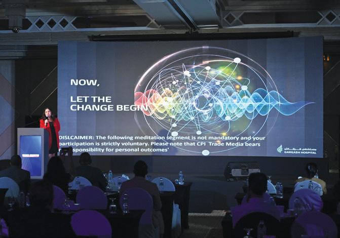 Prior to the day’s second panel, the audience had an excellent presentation from Mandar Kulkani, CFO of Gargash Hospital, which, he proposed, is a nearideal first resource for Wellness, and a facility that companies of many sizes and disciplines should very much keep in mind. The hospital has pioneered front-