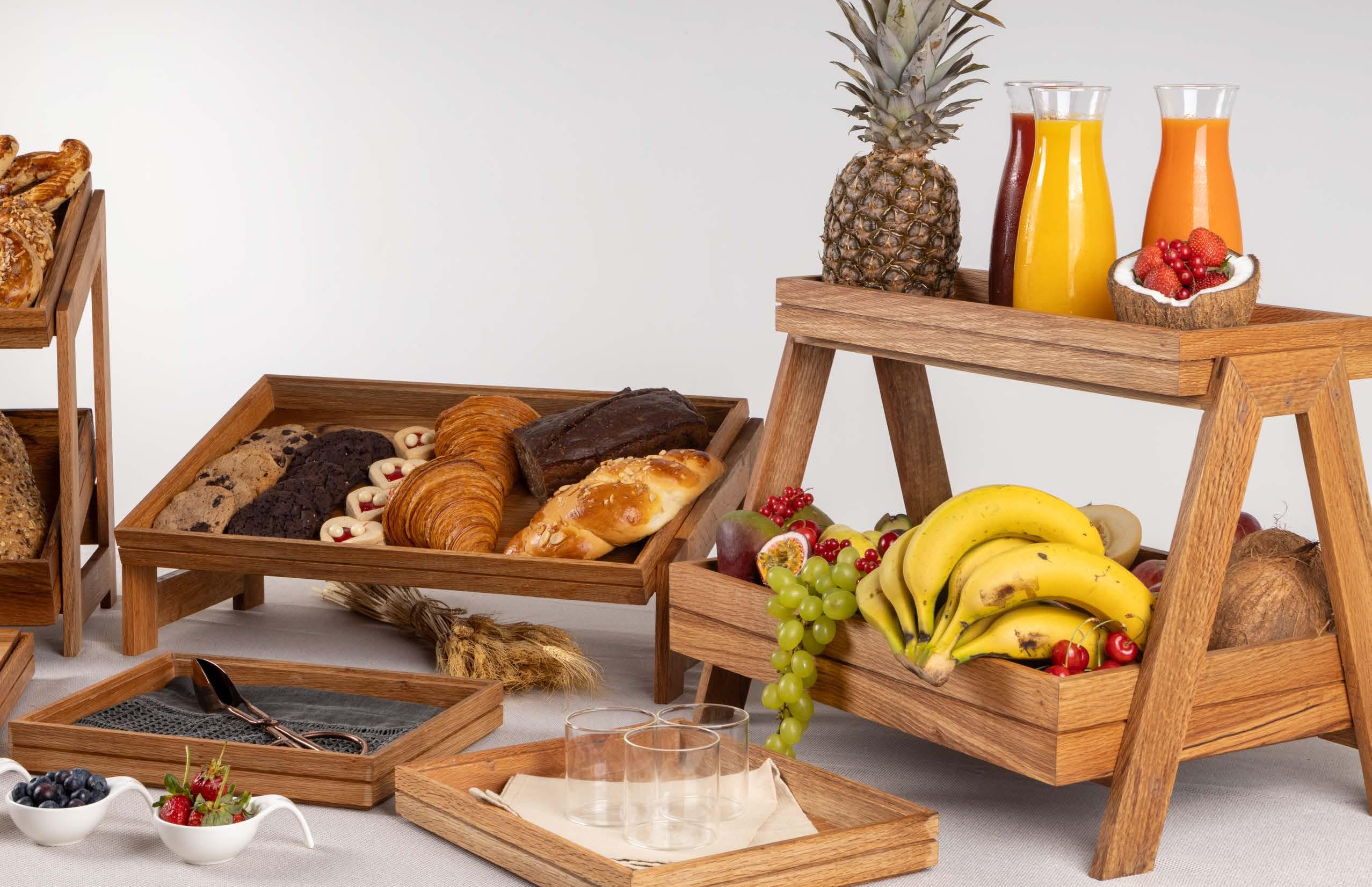 Our buffet displayware products are meticulously crafted from FSC-certified wood, offering not only a sophisticated and stylish presentation but also a strong commitment to environmental sustainability and responsible forestry practices, ensuring that every piece contributes to the preservation of our planet’s forests for future generations.