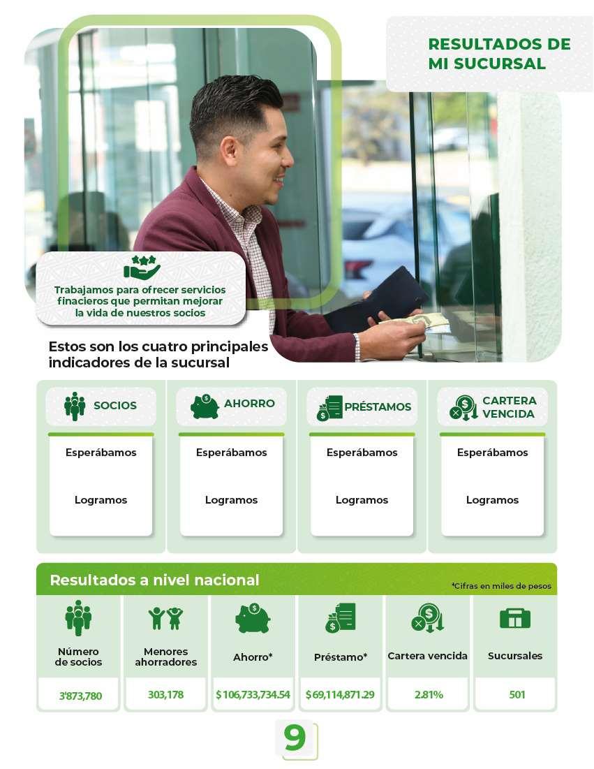 Hoy compartiremos con ustedes los resultados realizados que han influido directamente en nuestros principales indicadores de crecimiento, así como los resultados derivados del uso de nuestros productos de ahorro y crédito, diseñados para beneficiar a toda nuestra comunidad de socios.