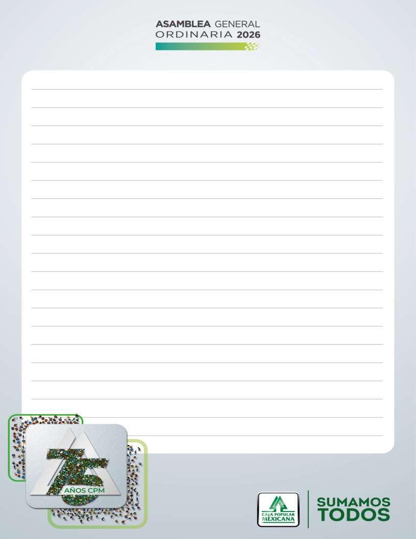 Tal como lo establecen las Bases Constitutivas de Caja Popular Mexicana, esta asamblea tiene como propósito presentarles las actividades más relevantes, los estados financieros y los planes de desarrollo que se proyectaron y realizaron en el año 2025.