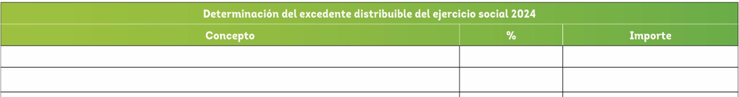 A fin de atender lo previsto en nuestras Bases Constitutivas, particularmente en lo que se establece en los artículos 123, 124, 125 y 126 relativos a la constitución de los diversos fondos y reservas normativas y para determinar la distribución prevista en el artículo 122 de las Bases Constitutivas, en facultad de los tres niveles de Asamblea, se comparte la siguiente tabla para determinar el excedente distribuible: