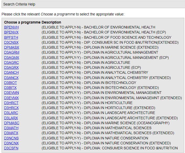 If the wording ELIGIBLE ALLOW – N appears in brackets as part of the programme description, then it means that you do not meet the entrance requirements for that specific programme. If you select such a programme, you will automatically be declined by the system. Please refer to the prospectus to verify the minimum admission requirements.
