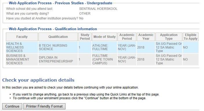 Your Name and Surname will be displayed together with your unique CPUT student number. Please use this Student Number in any further queries or accessing any self-service portals