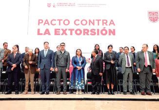 ESTRATEGIA INTEGRAL. La jefa de Gobierno de CDMX, Clara Brugada, encabezó la firma del "Pacto contra la Extorsión", plan con el cual los tres poderes de gobierno, alcaldías, autoridades federales, comerciantes, instituciones académicas y religiosas y medios de comunicación combatirán este delito, uno de los que más preocupan a la ciudadanía. A la par, Brugada informó que enviará al Congreso local una iniciativa para tipificar como delito la tentativa de extorsión. POR FRANCISCO MENDOZA NAVA: Foto: Cuartoscuro. Pág. 10
