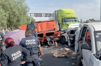 • UNA CARAMBOLA en la que estuvieron involucrados al menos 10 vehículos dejó como saldo una persona muerta y 13 lesionadas la mañana de este lunes en el Circuito Exterior Mexiquense, a la altura del municipio de Ecatepec.