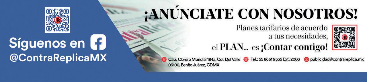 El Diario ContraRéplica es publicado por Ediciones San Francisco S.A. de C.V. Dirección: AV. Obrero Mundial 184-A del Valle C.P. 03100 Alcaldía Benito Juárez. Teléfono: 86 61 95 55.