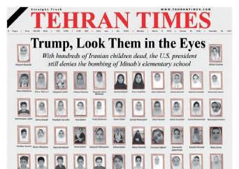 El medio Tehran Times instó al presidente de Estados Unidos, Donald J. Trump, a seguir negando el asesinato de menores de edad en Irán “mirándolos a los ojos”. Esto tras publicar una portada donde se observan 100 rostros de niños que han muerto a causa de los bombardeos, realizados junto con Israel el 28 de febrero, entre ellos uno contra una escuela primaria de Minab, Irán.
