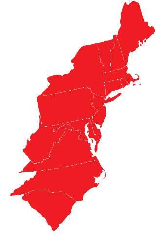 Eastern Marketing Service provides professional, factory trained field service and support in the red shaded areas.