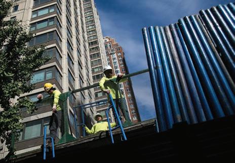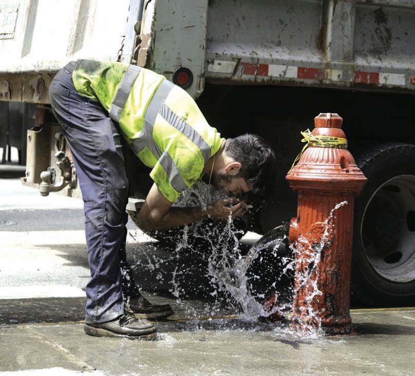 SUMMER BEGAN WITH a late-June heat wave in the city that pushed temperatures into the 90s for four days. Mayor Eric Adams and Gov. Kathy Hochul urged residents to seek shelter in cooling centers and libraries, with similar guidance sure to come as weather forecasts predict more 90-degree days in the of ng. Here, a city worker gets some relief from the heat thanks to a re hydrant. Read our coverage at crainsnewyork.com
