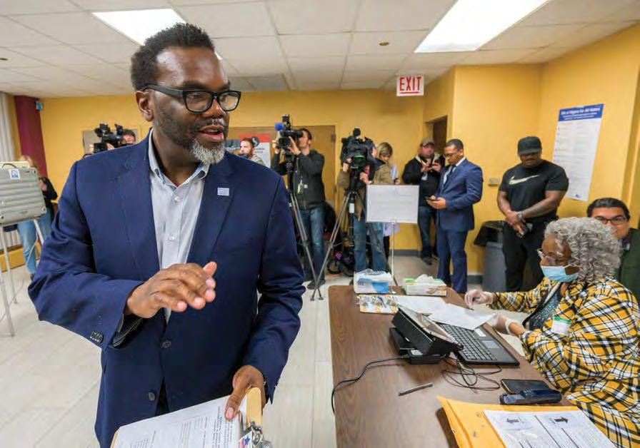 Iwrote recently about the two big crises Mayor Brandon Johnson will have to deal with as he tries to get his arms around his new and enormous job. at’s turning down the temperature on what could be a long, hot summer on the city’s streets, as well as nding the resources to feed, house and otherwise get on their feet the swarms of refugees and immigrants now packing city police stations and other available locales.