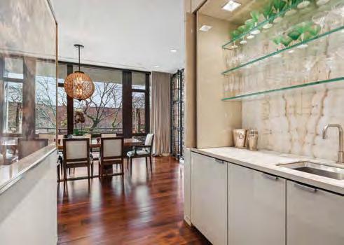 e couple bought the space new in 2007 and nished it to their speci cations, which Gail Marks describes as “a family home with a warm modernity.” e developer’s use of glass and openness got the modernity rolling, and the Markses warmed it up with a sophisticated palette of tigerwood panels, lacquered cabinetry and Jerusalem limestone.