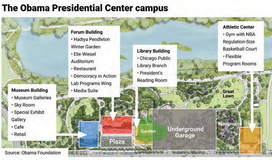 But after years of planning and raising well over $1 billion, the Obama Presidential Center nally has emerged from the ground as a physical presence in Jackson Park, just across the street from Hyde Park Academy High School and a quick walk from the University of Chicago campus.