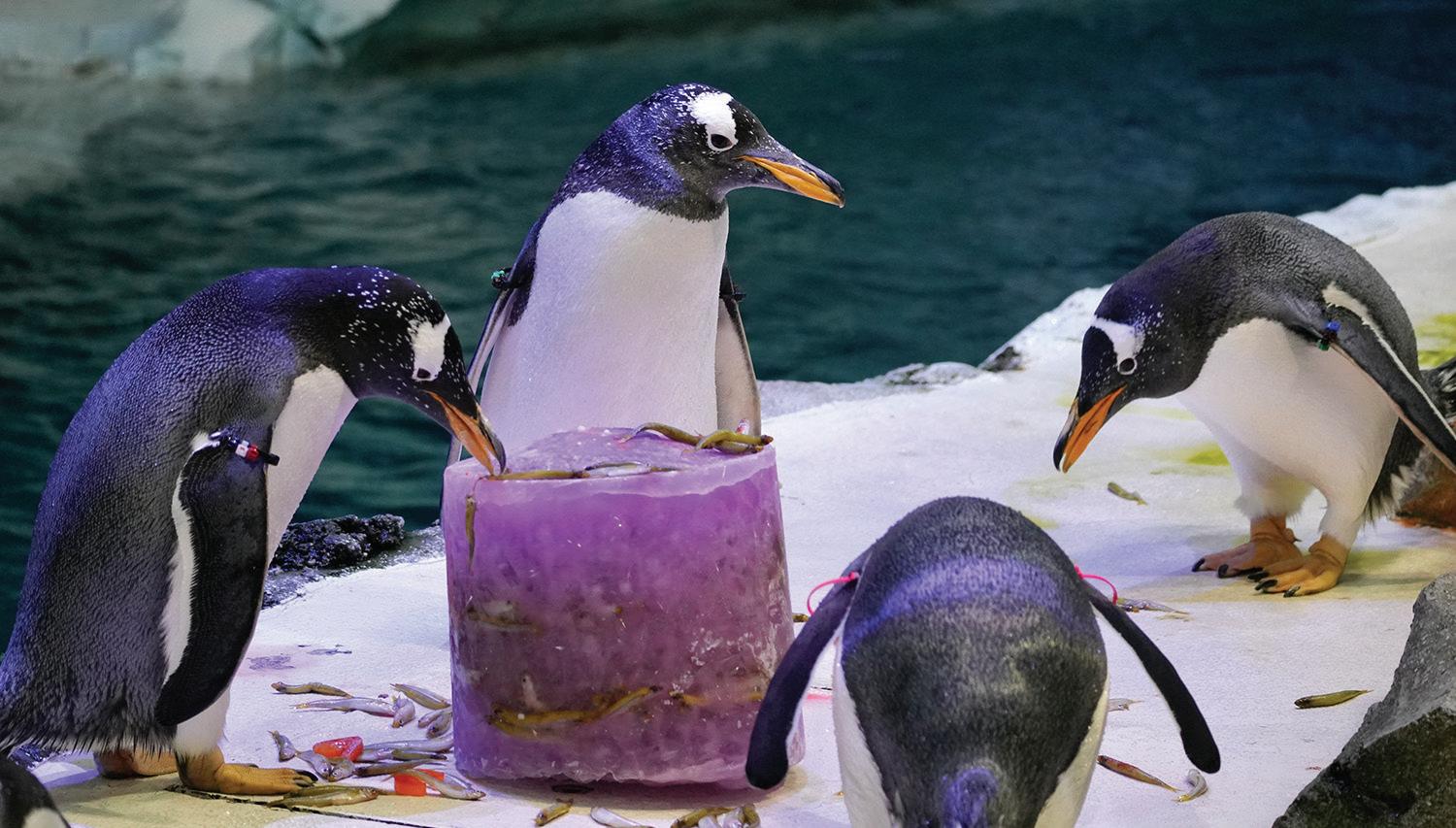 Last December, Roseanne, a beloved rockhopper penguin, turned 40 years old. Her party was extra special because now, she is one of the oldest penguins in human care in the world. Her hatch day party was filled with treats and love from her dedicated animal care team. She celebrated with a special fish-decorated ice “cake.”