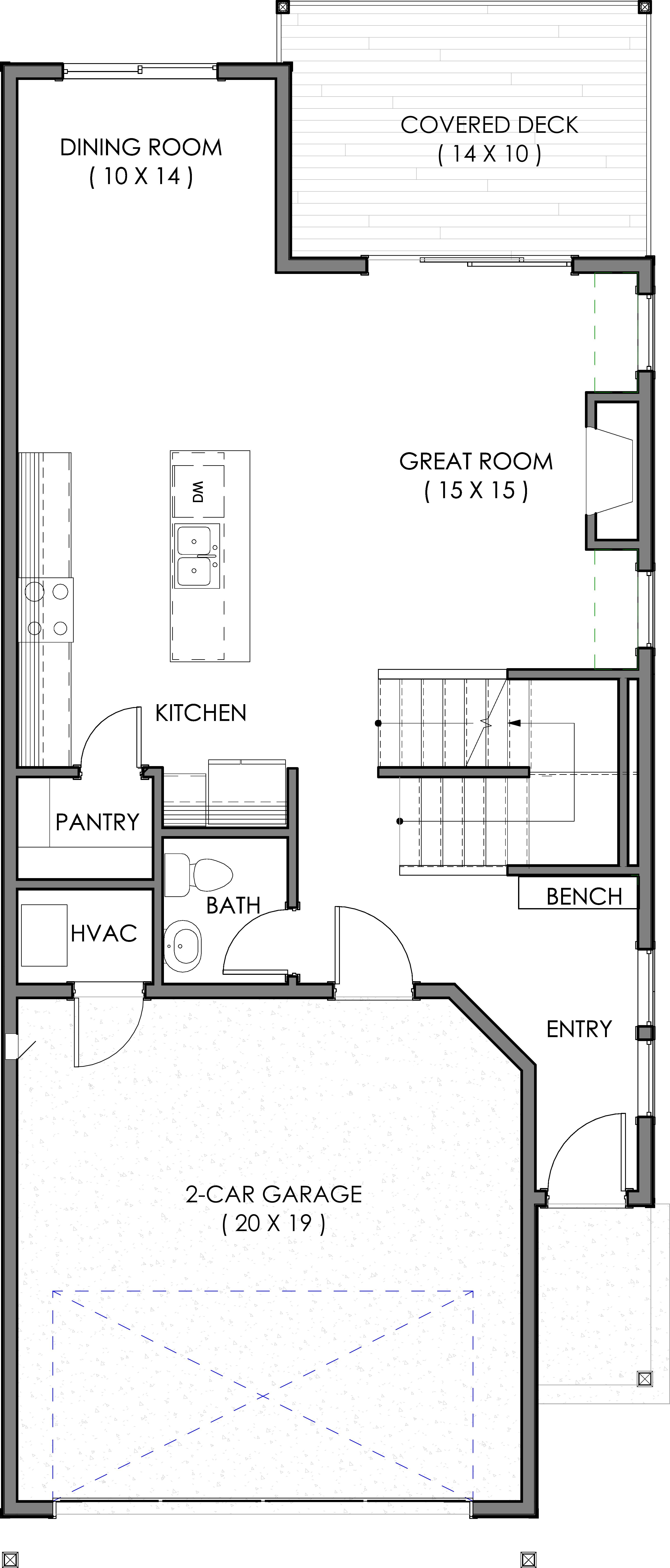 Covered rear concrete patio or Trex deck, vary by plan
