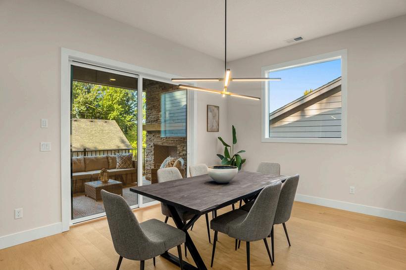 Functional and stylish wood floors in the great room, kitchen, den, main floor hallway and dining room