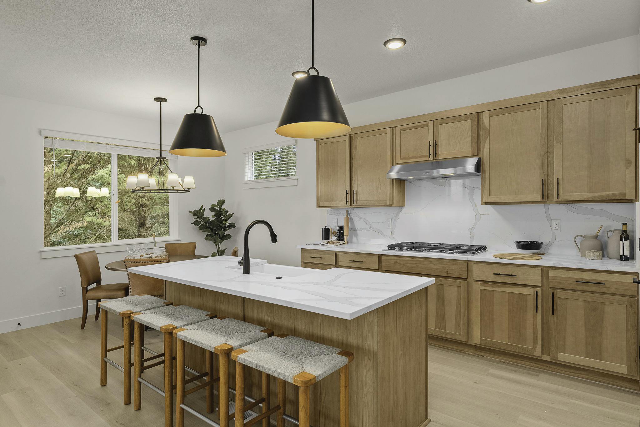 Kitchen Countertops: Quartz Slab with Full Height Backsplash