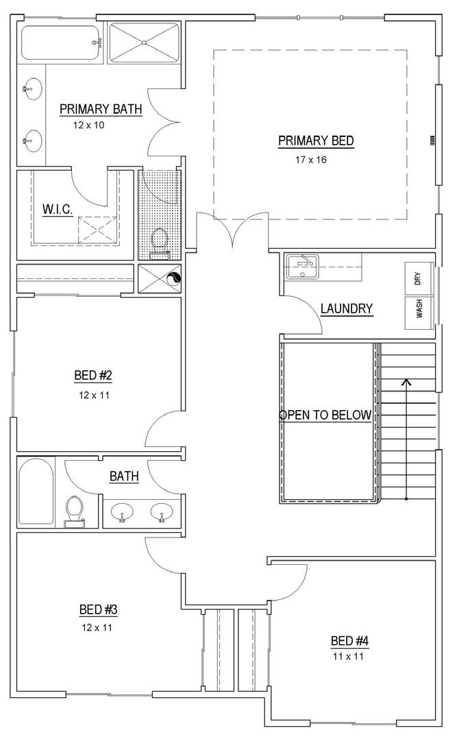 Stairs: 1st Floor Open Handrail with Painted 2” Wood Balusters and Handrail