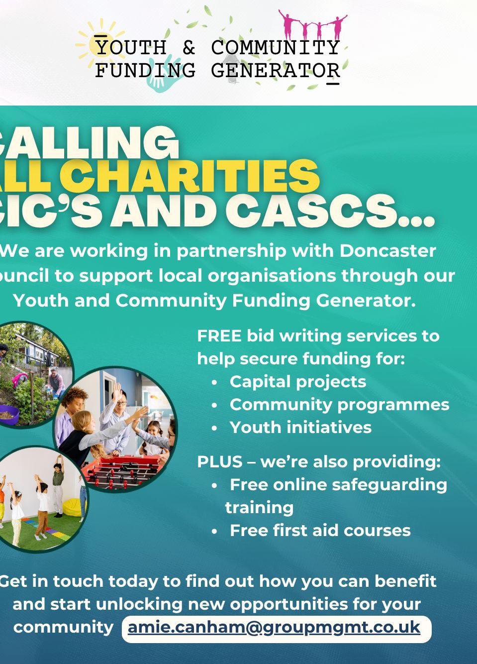 Any charities, CICs or CASCs in the Doncaster area can contact Amie for support by emailing: amie.canham@groupmgmt.co.uk