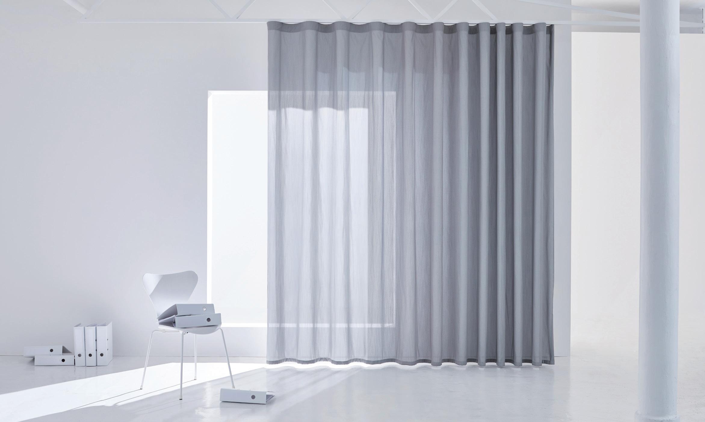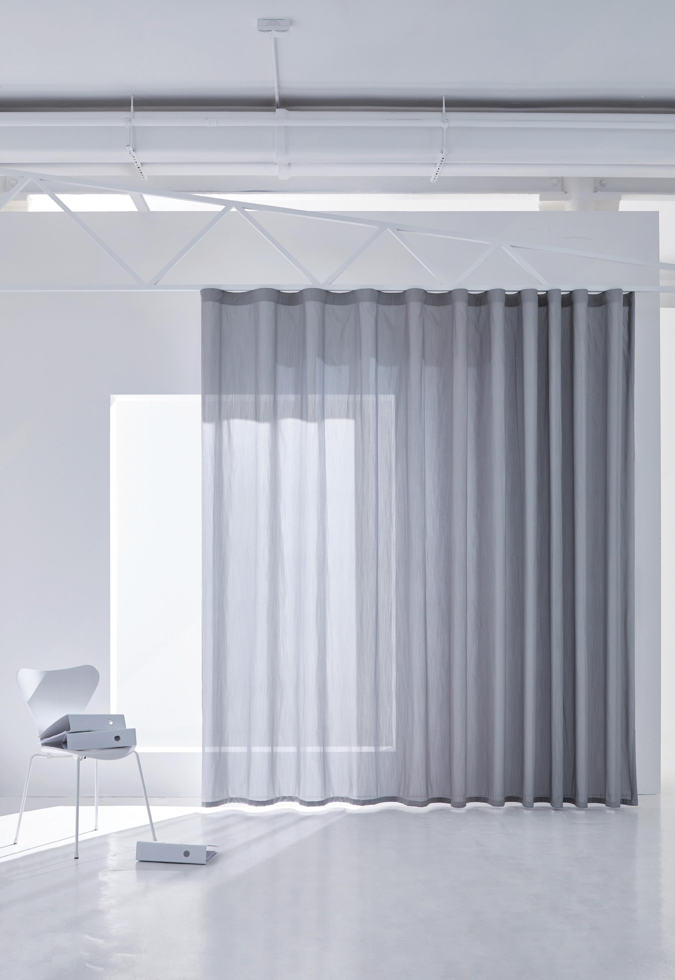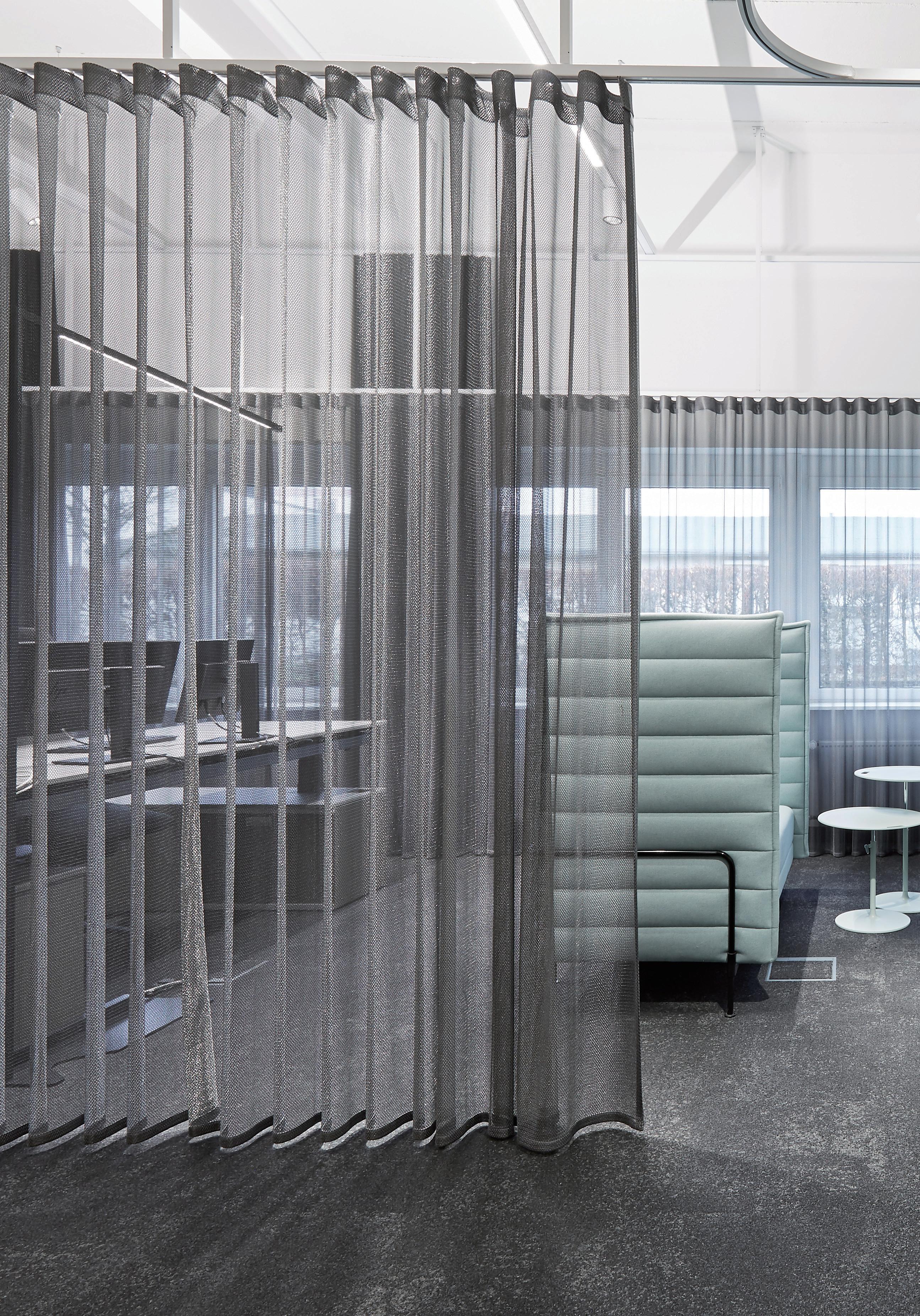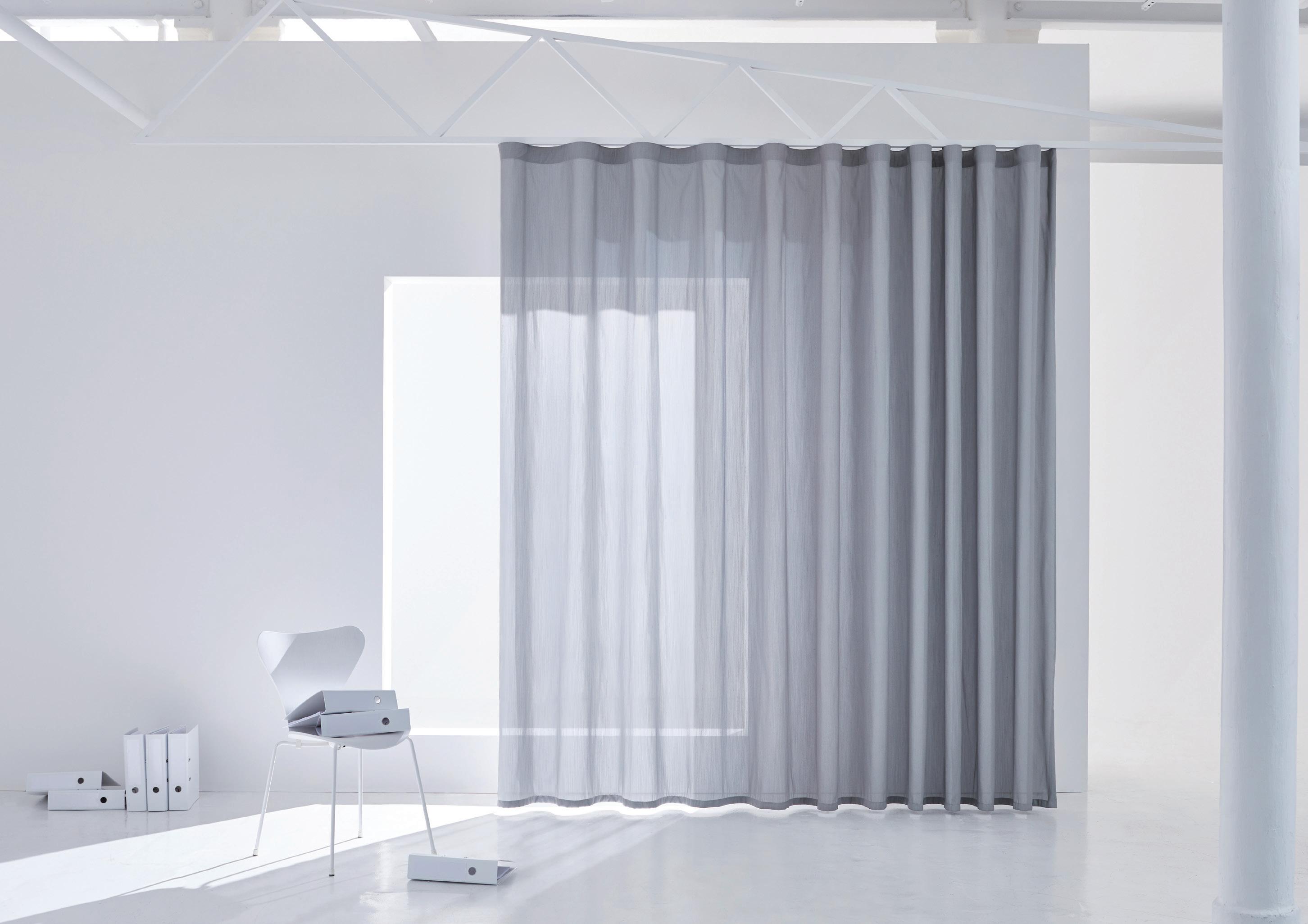 生地裏面にアルミニウムでメタライズ加工を施したセミトラン スパレントのカーテンファブリックです。強い日差しとまぶし さから室内を効果的に保護します。オフィスにもプライベート 空間にも最適な調光ソリューションです。透け感がより高い SHADOW V(シャドーV)を組み合わせることで、窓の方向に よって異なる光の条件を満たし、空間に統一感をもたらします。