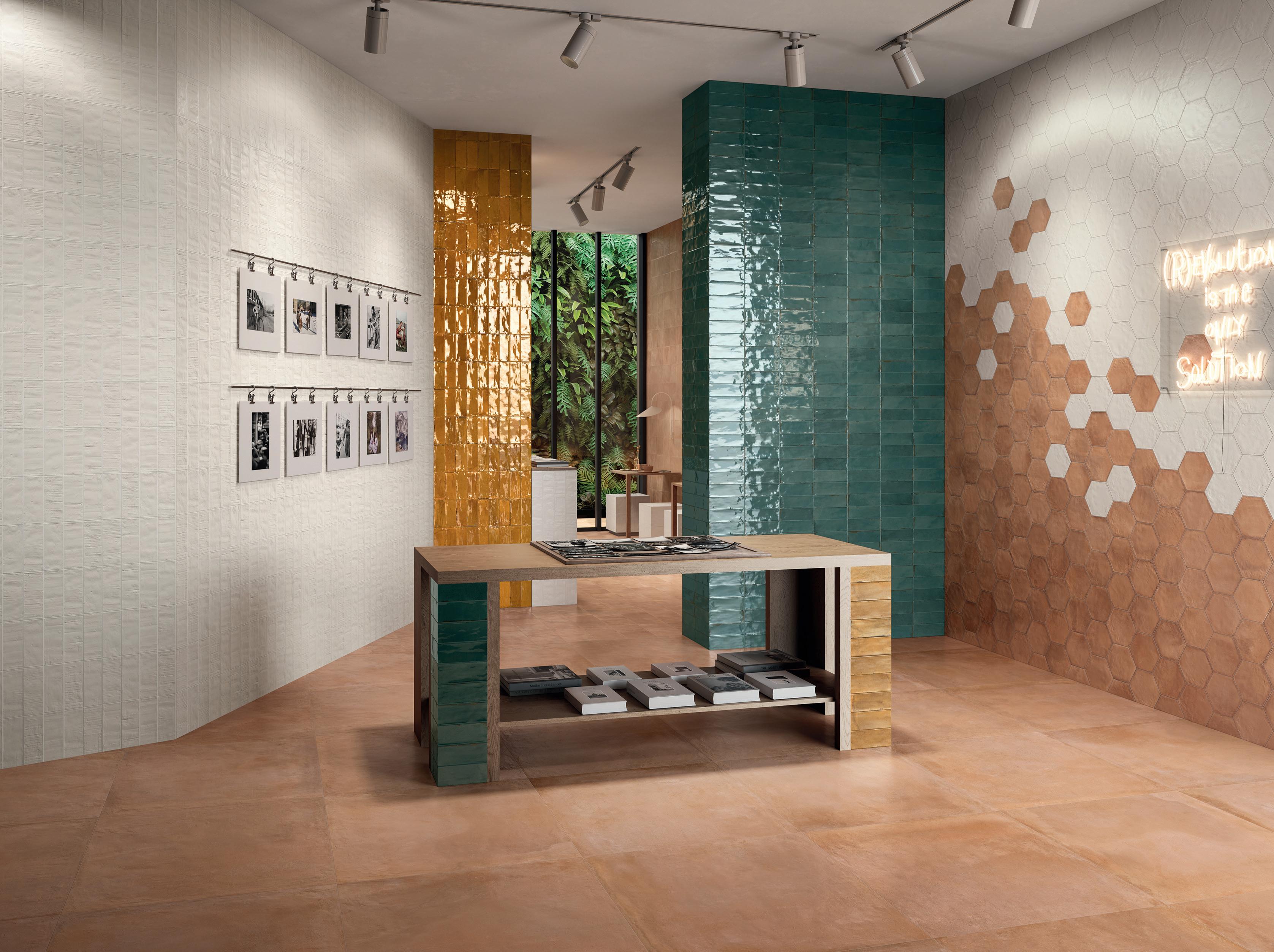 Exhibit porcelain tile harmoniously blends earth’s raw beauty with enduring elegance. This melding manifests in a spectrum of shapes and nuanced hues, each designed to infuse spaces with warmth and vibrancy. Dedicated to expressing terracotta through the perfection of imperfection.