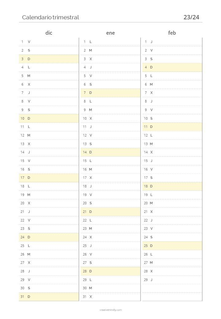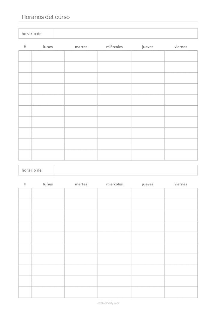 Calendario bimensual Calendario trimestral Calendario semestral Horarios