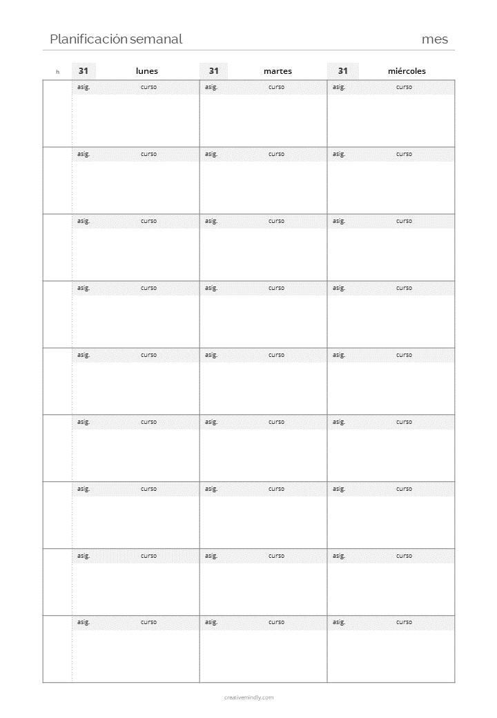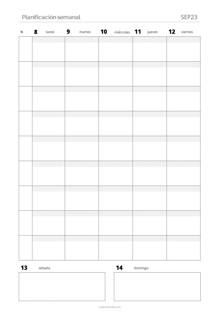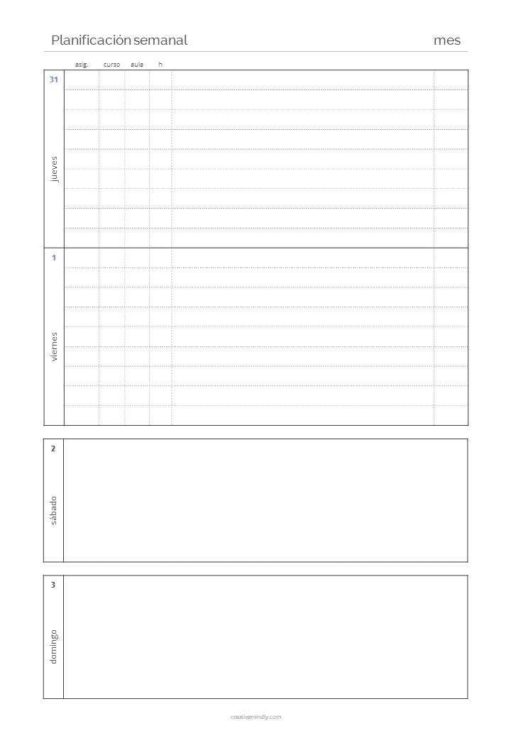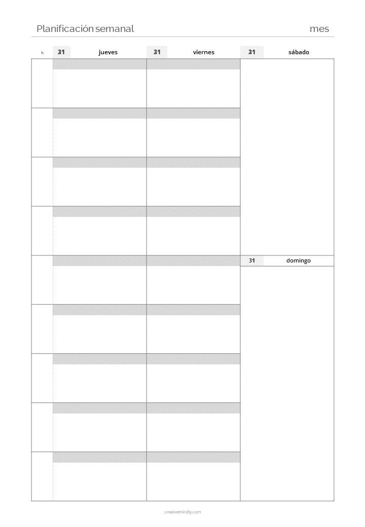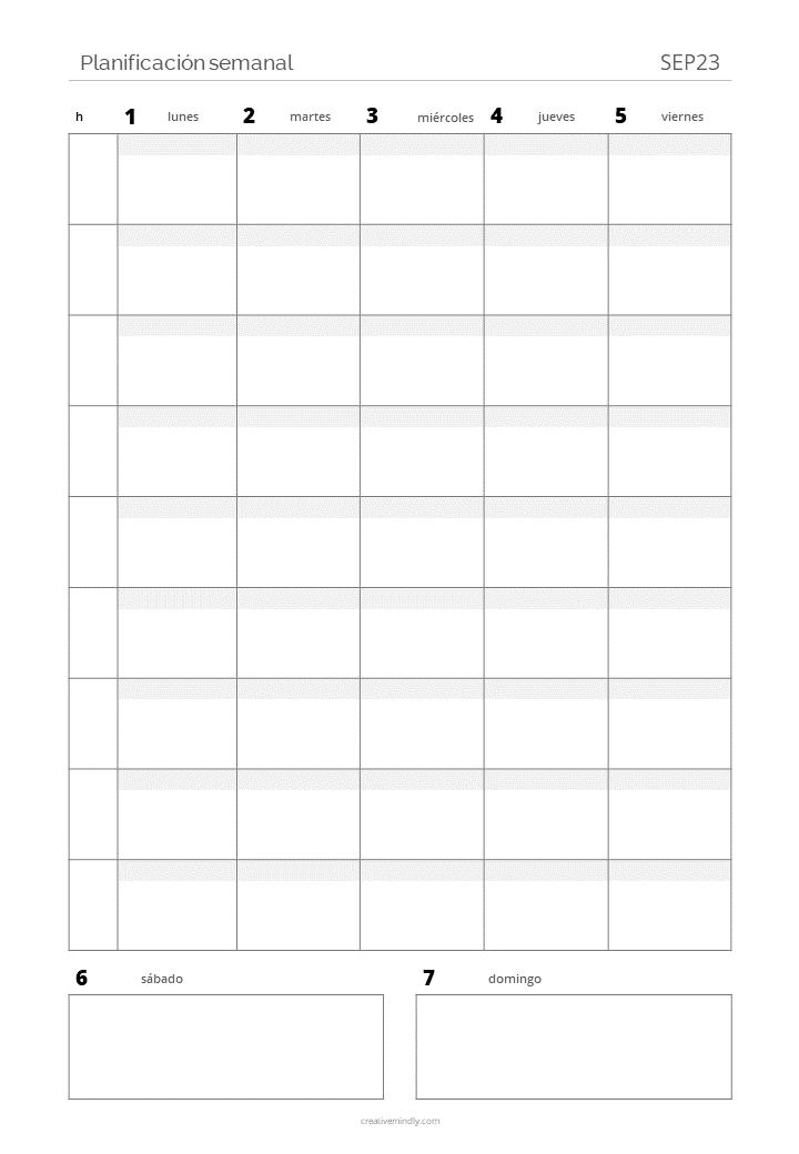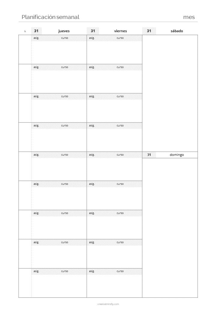www.creativemindly.com Calendario Una página Programación semanal 4 Programación semanal 4