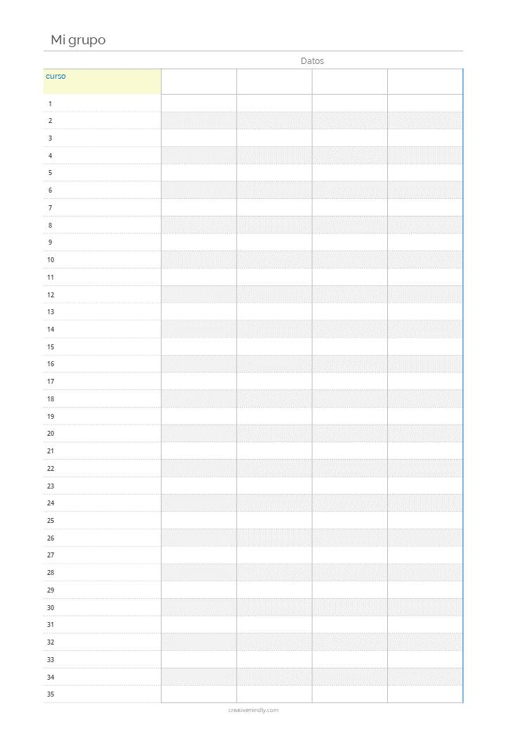 www.creativemindly.com Mi grupo: datos Mi grupo datos Lista de alumnos Ficha de alumnos/as Ficha de alumnos/as Ficha de alumnos/as