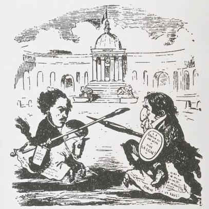 El tema no queda solo en el Salón, por supuesto, aparece la prensa Quienes habían puesto a parir a Ingres, ahora lo amaban Dependiendo del signo del periódico, se criticaba a uno o a otro pintor. Caricaturas a diestro y siniestro, también, y no solo de los medios, sino del propio Delacroix A partir de ese momento, los desdenes entre ambos fueron frecuentes, que si hueles mal, que si no sabes hacer una línea recta Artistas