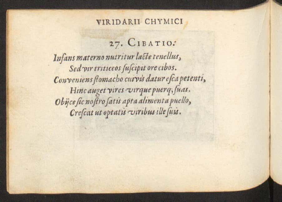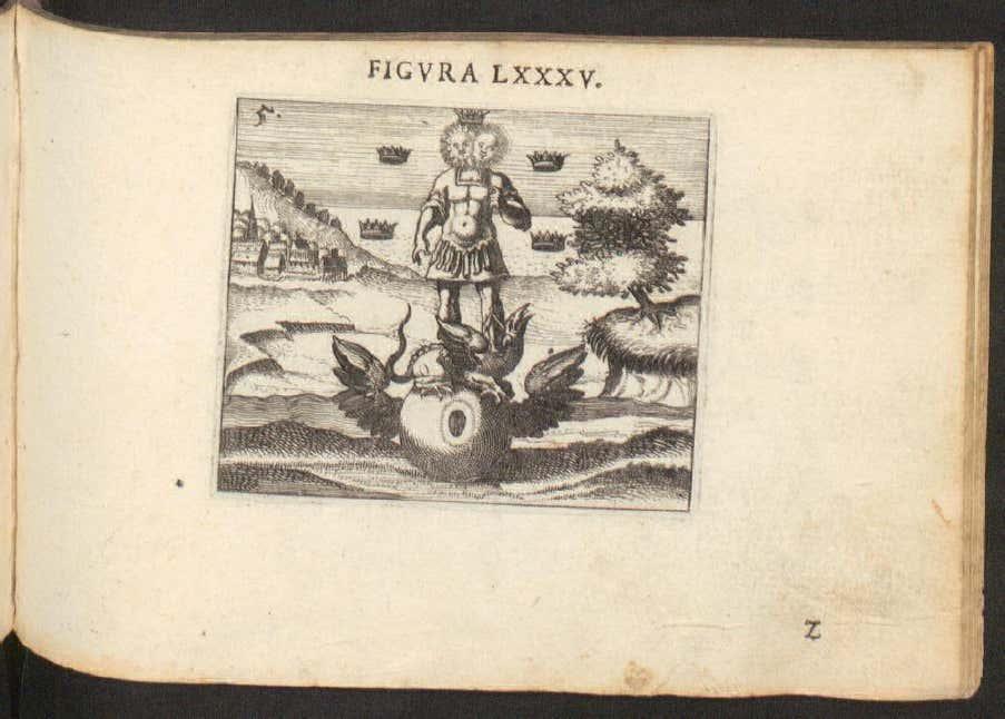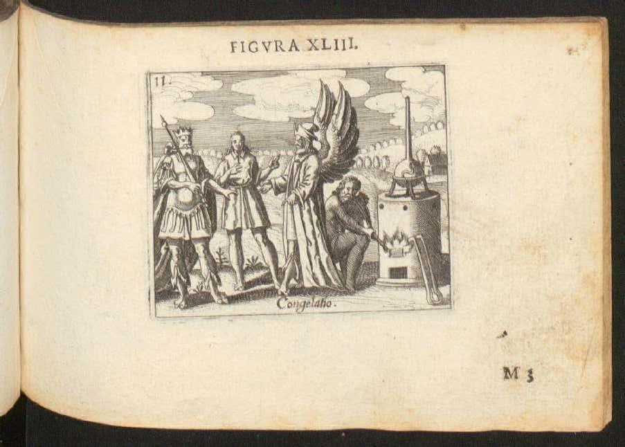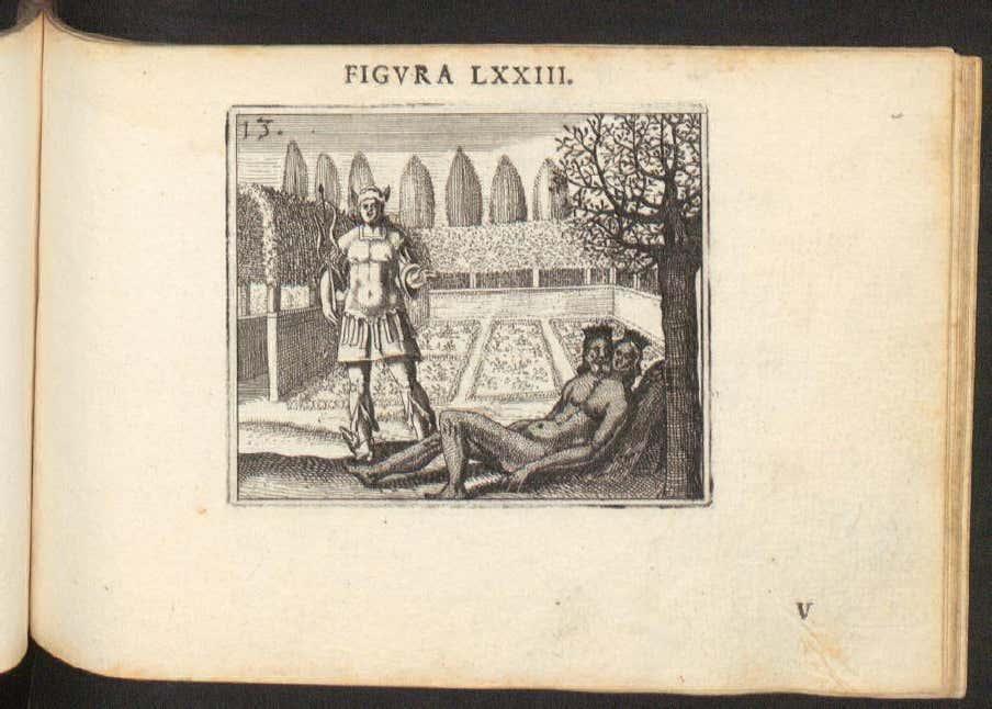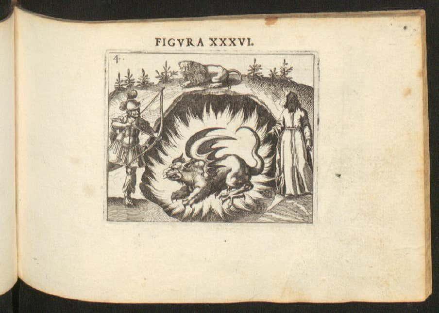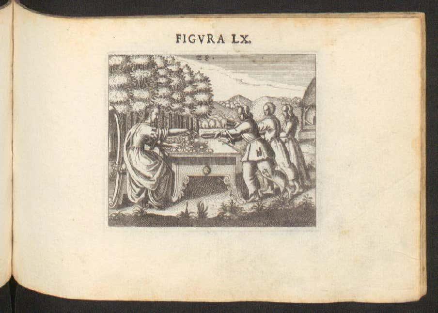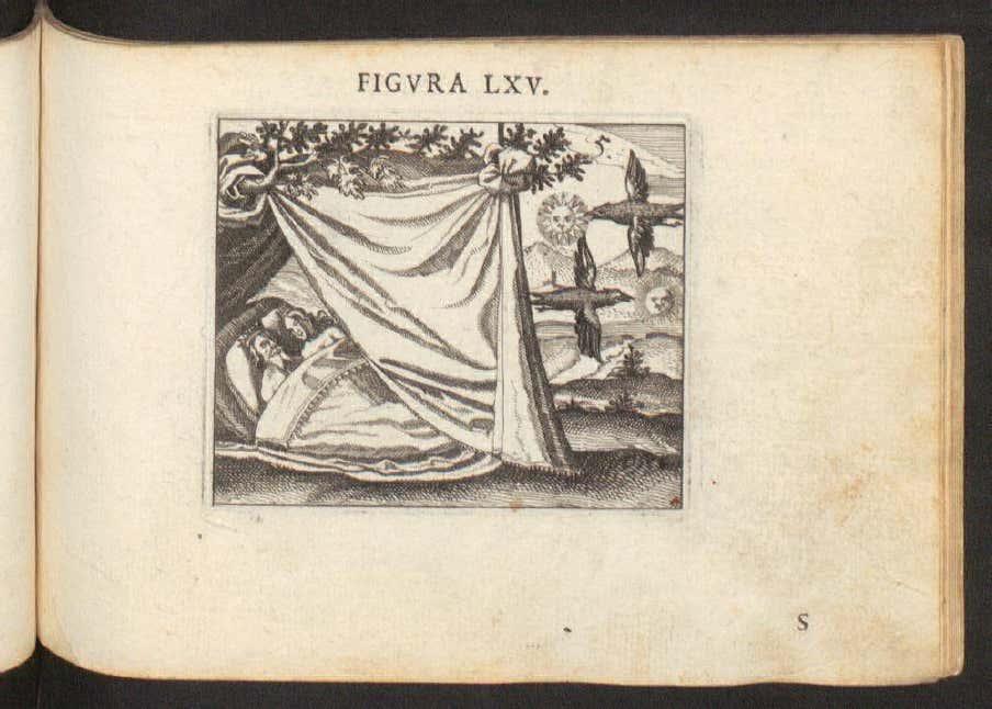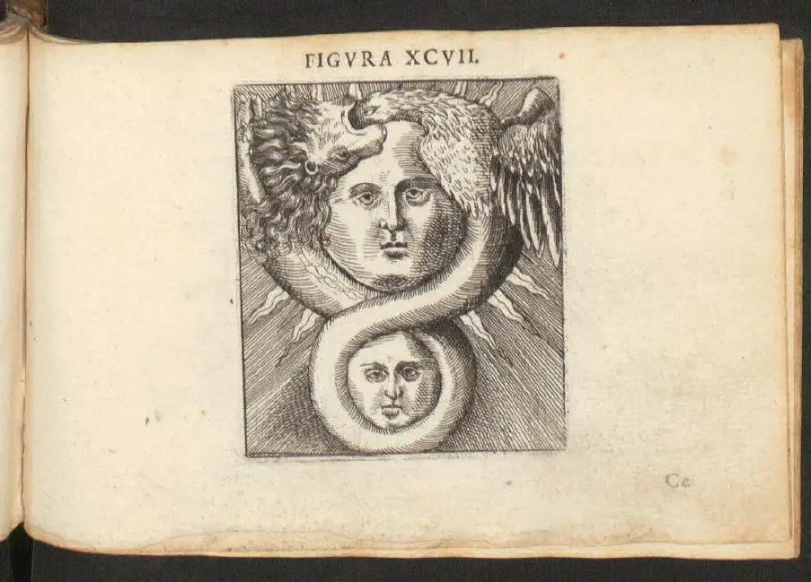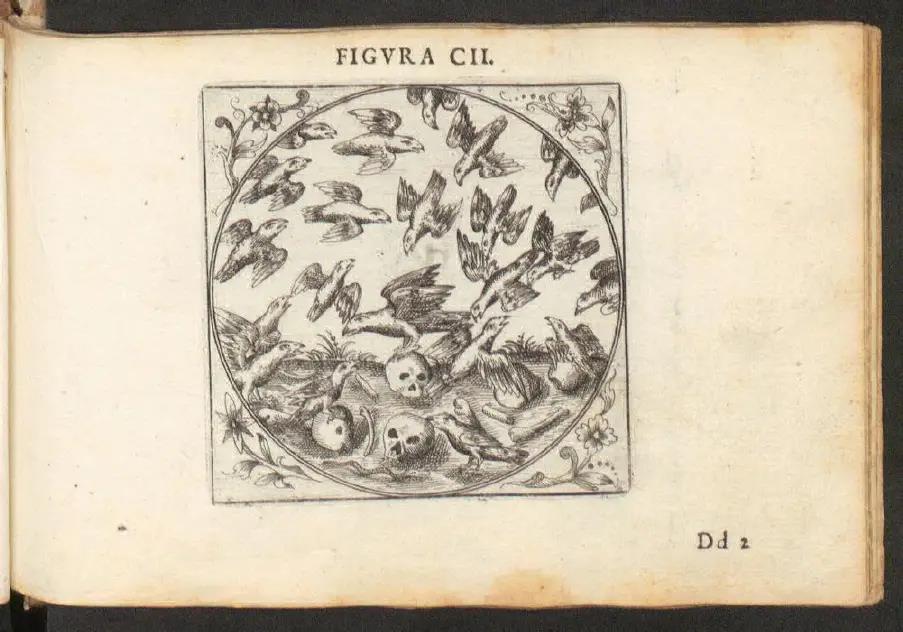 at the time it is most useful. Here you see the figures & songs. They were taken from the works of others: these were composed by me. I like smoky monochromes, preferably copper. And indeed for every reason. For I think that it is a greater art to delineate something with one color, and to frame the eyes in a suitable way to distinguish them, than to refer to them with ornaments of various pigments. I trusted, therefore, to procure for myself such a Philotheque, which would refresh my eyes with artful pictures, and delight my mind with a mythical lens.