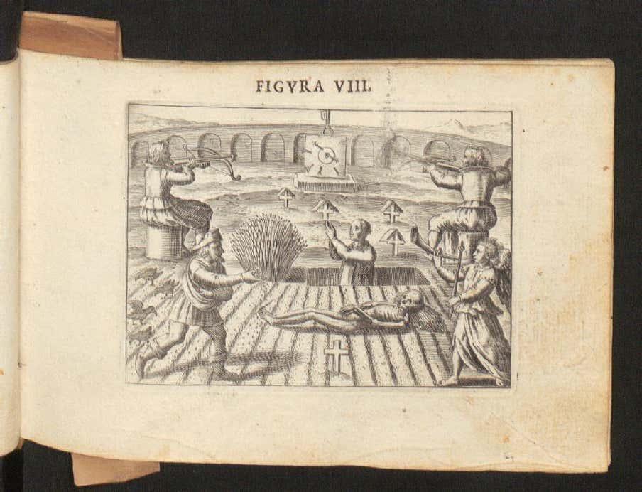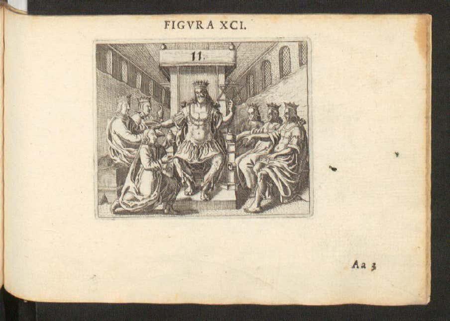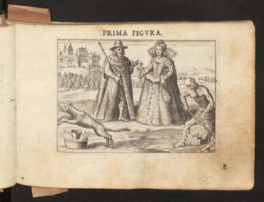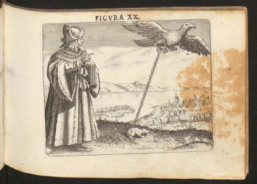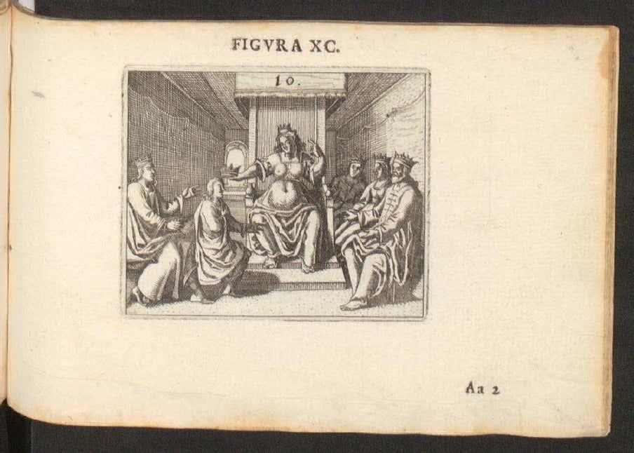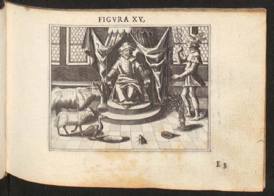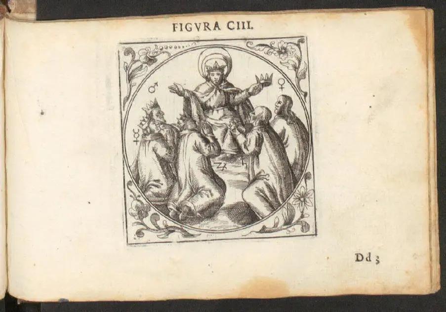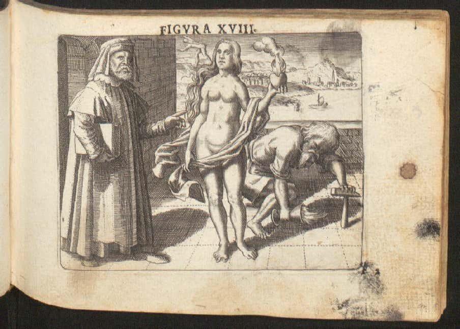 at the time it is most useful. Here you see the figures & songs. They were taken from the works of others: these were composed by me. I like smoky monochromes, preferably copper. And indeed for every reason. For I think that it is a greater art to delineate something with one color, and to frame the eyes in a suitable way to distinguish them, than to refer to them with ornaments of various pigments. I trusted, therefore, to procure for myself such a Philotheque, which would refresh my eyes with artful pictures, and delight my mind with a mythical lens.