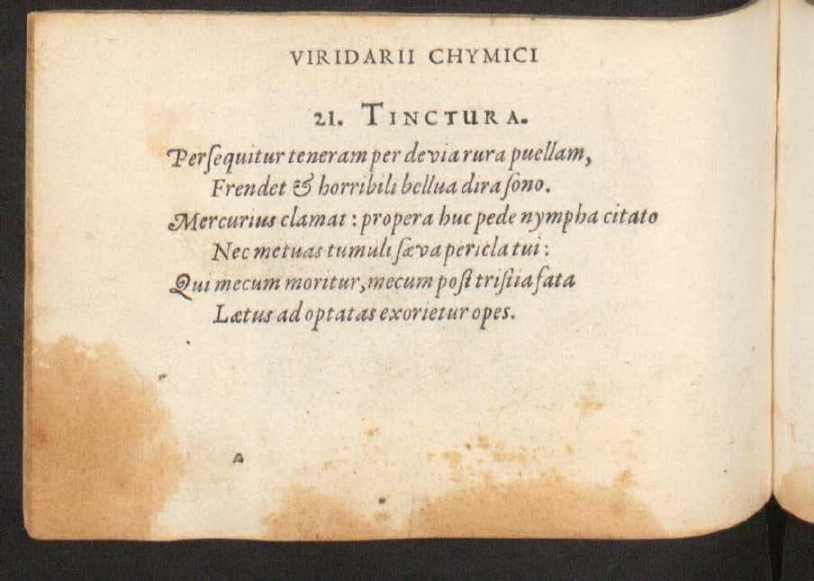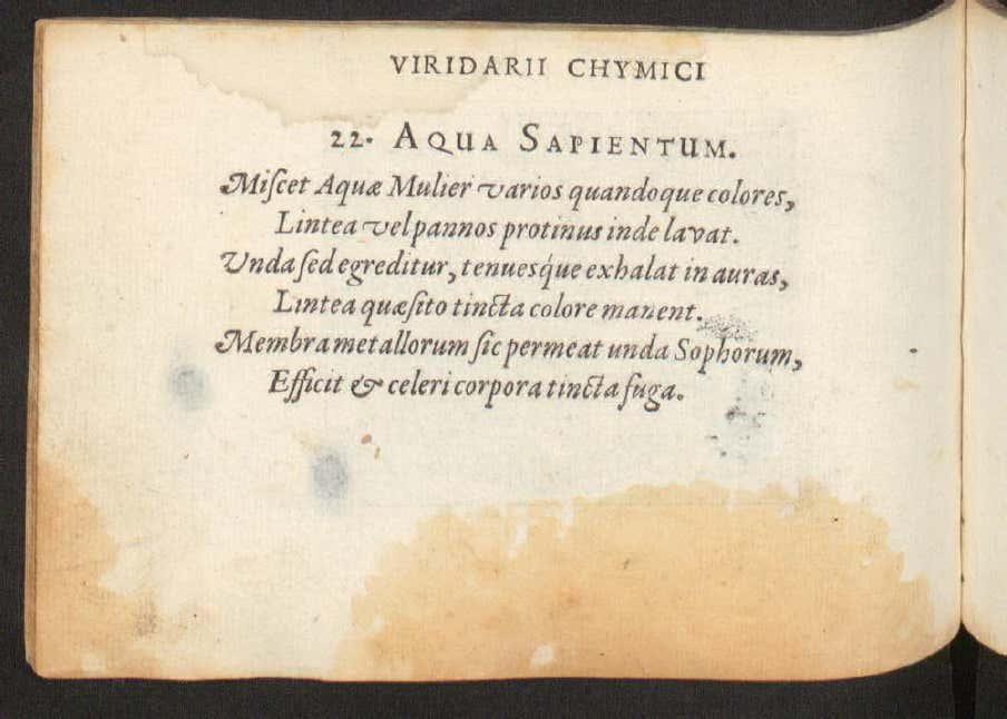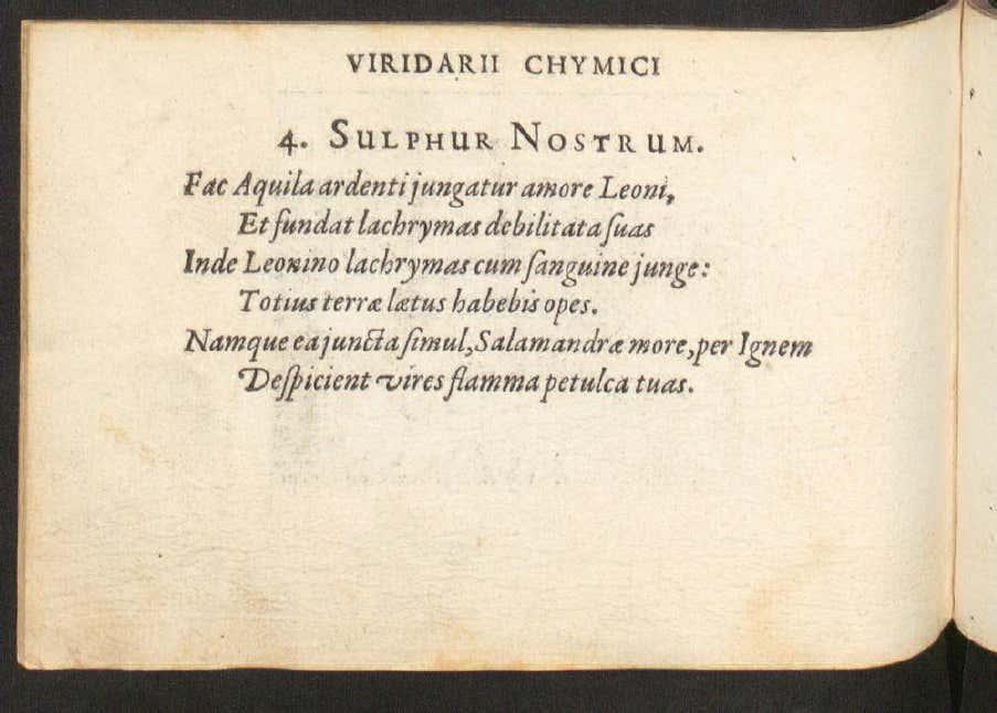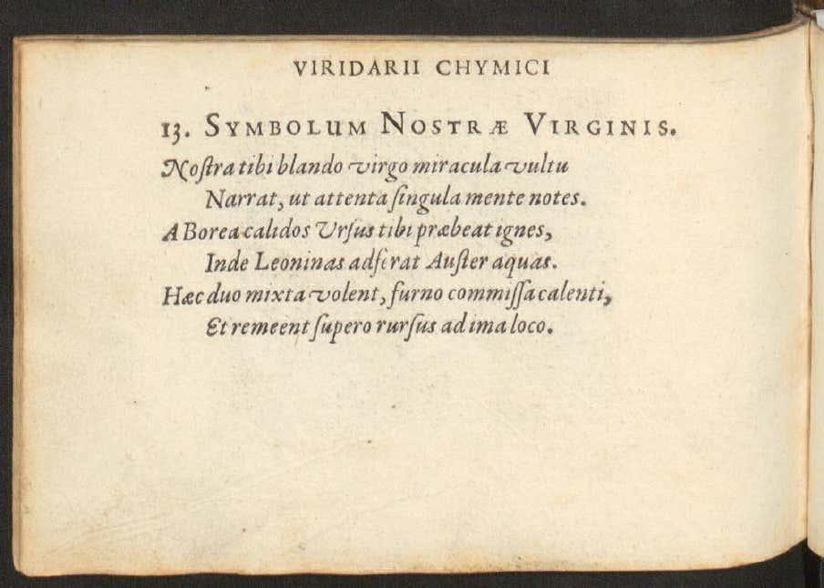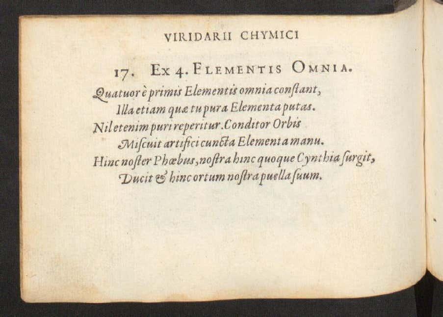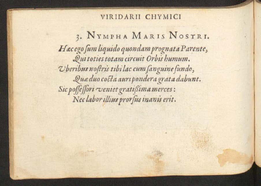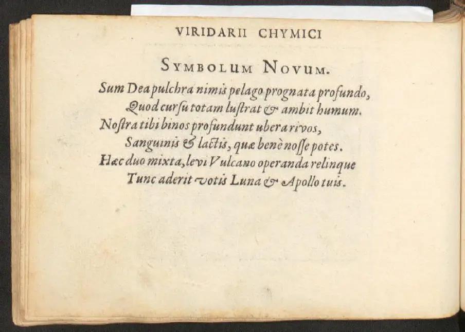 SYMBOL. I am a beautiful goddess born in the depths of the ocean, Which in its course surveys the whole and surrounds the ground. Ours, for thee, are deep and abundant, Bloody and happy, you can know that well. When these are mixed, leave the light Vulcano to work Then the Moon and Apollo will be present to you.