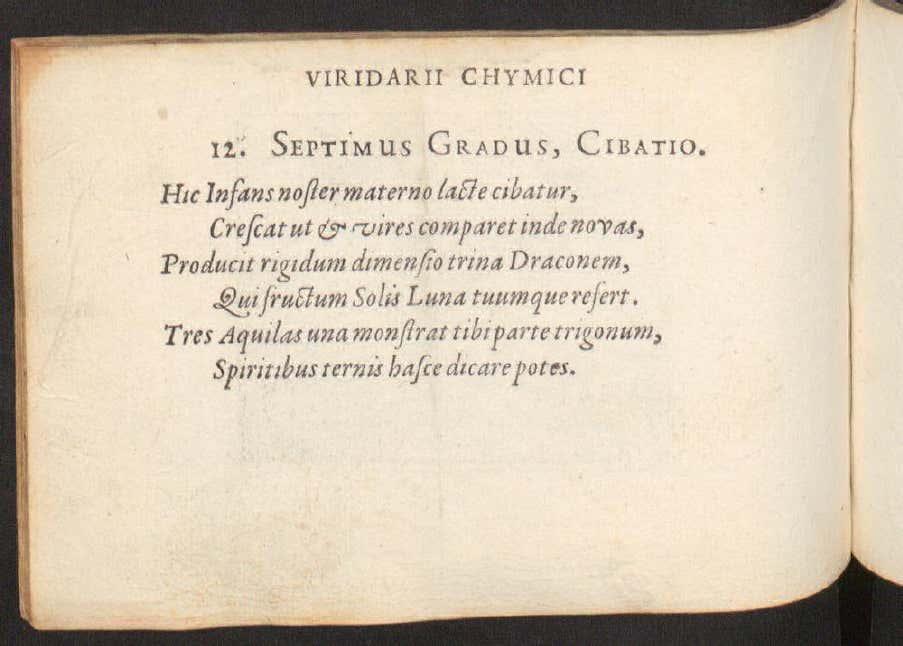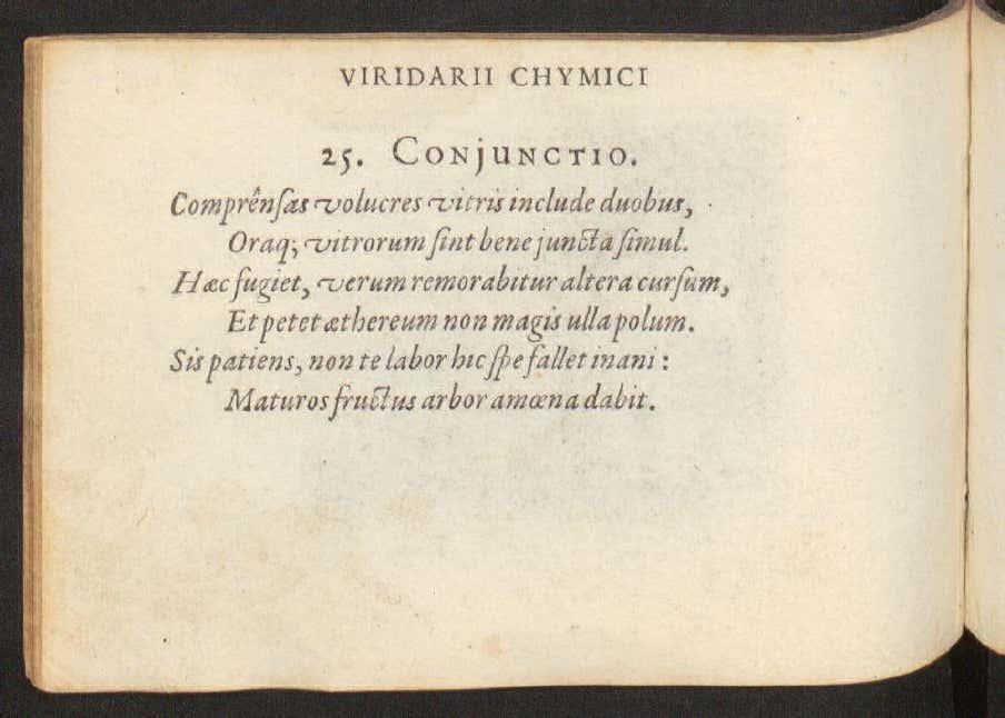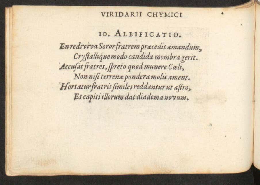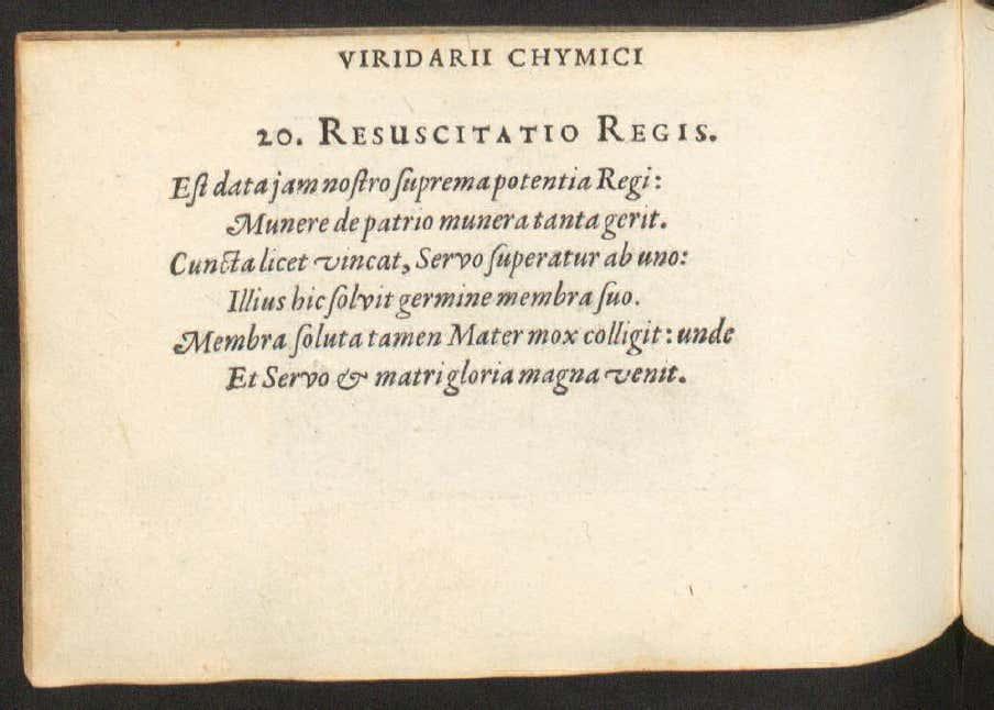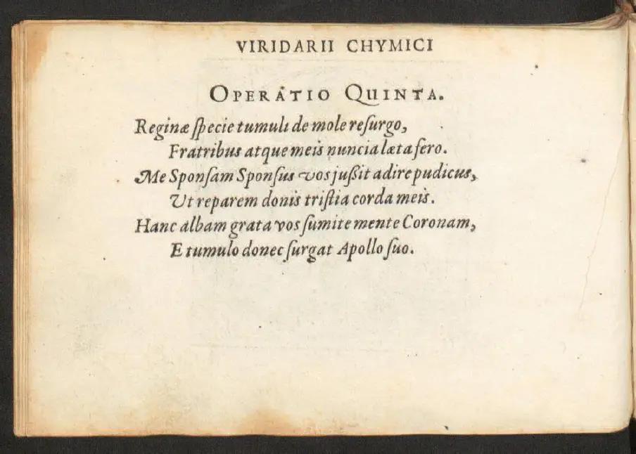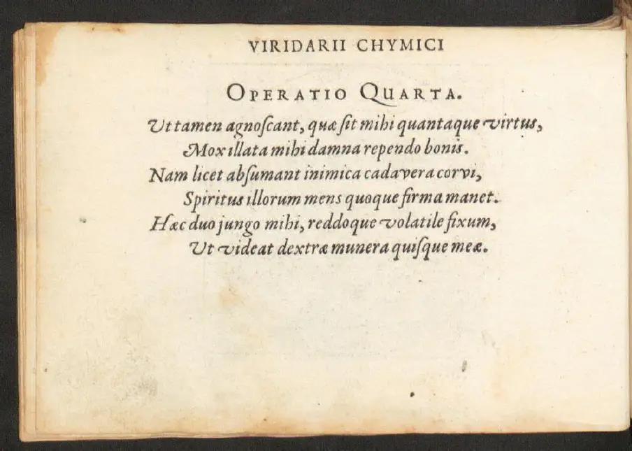 OPERATION FOURTH. That they may acknowledge what and how much virtue I have, I soon repaid the losses inflicted on me. For though the ravens devour the enemy's corpses, May their spirits also be firm in their minds. I join these two to myself, and return the volatile fixed, That every one may see the right gifts of mine.