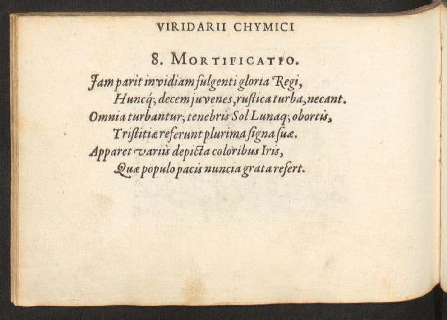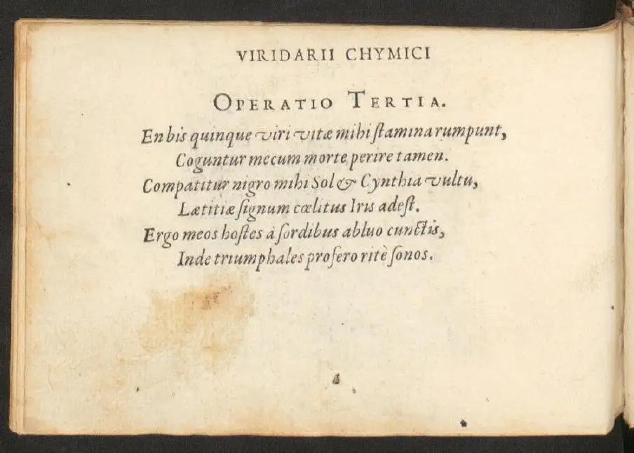 GREEN CHEMICALS THE THIRD OPERATION. And twice five men break the threads of my life, I am forced to perish with death. The black Sol and Cynthia are pitiful to me, The rainbow is the sign of joy in the sky. Therefore I wash my bosoms from the filth, Then I utter the triumphal sounds duly.