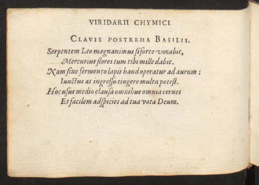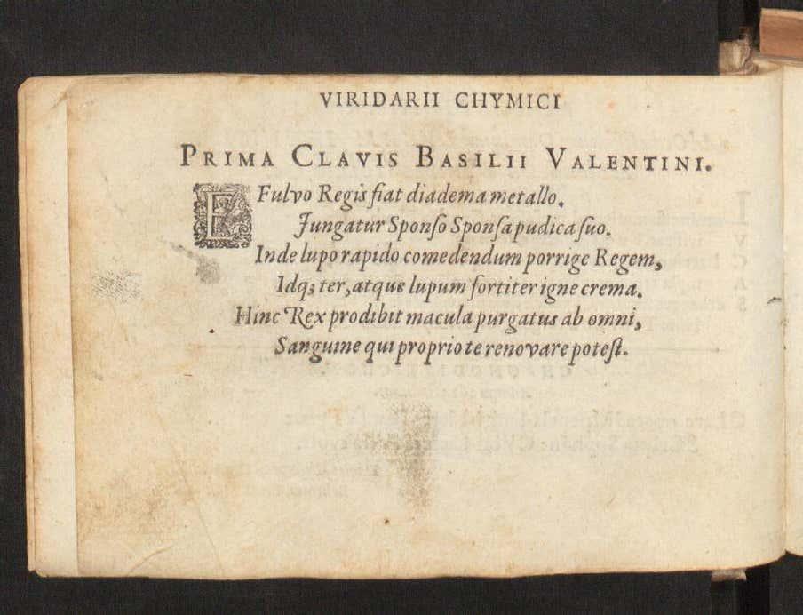 GREEN CHEMICALS THE FIRST KEY OF BASIL VALENTINE. Let the King's yellow be made into a metal diadem. Sponfo Sponfapudicafuo is played. Then the wolf quickly held out the King to be devoured, Hine King prodtbit cleaned from every stain, Blood that can regenerate itself.