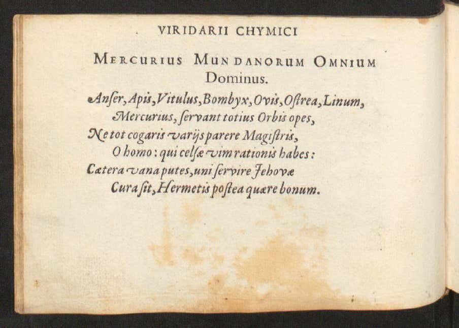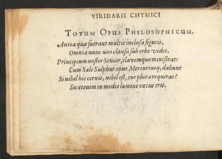 GREEN CHEMICALS THE WHOLE PHILOSOPHICAL WORK. What had previously been included in the mixed figures You see everything now closed in one world. Our Elder principle and key: With Salt Sulfur work Mercuriusq; they will give If you see nothing here, it is nothing, why ask for more? In fact, you will be blind in the middle of the light.