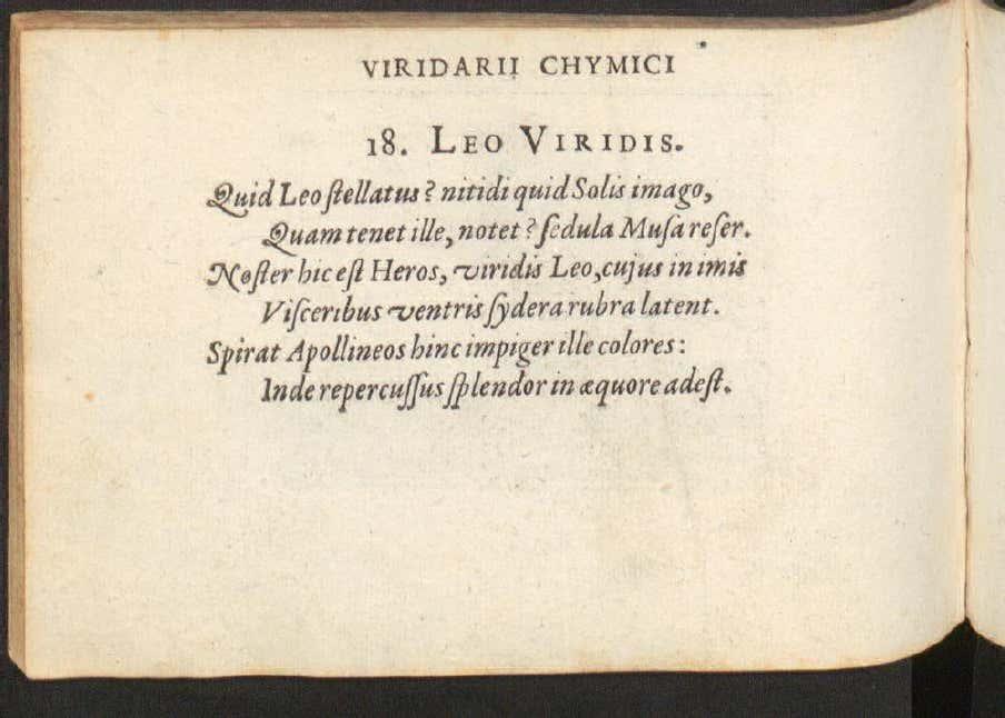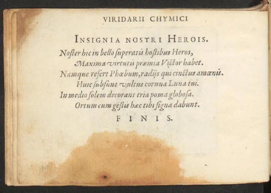 GREEN CHEMICALS INSIGNIA OF OUR HEROES. Our heroes here in battle overcome our enemies, ViEtor has the greatest rewards of virtue. For he refers to Phoebus, the rays that are beautiful in color. Under this are the horns of your moon. In the middle the ground is decorated with three globeshaped apples. When you get up these signs will give you signs. FINISH